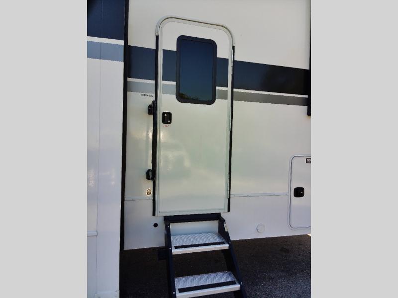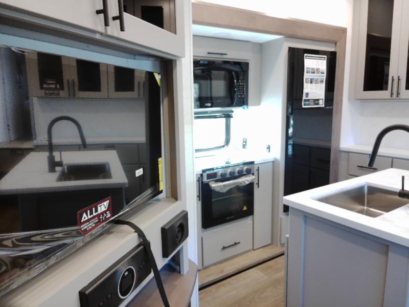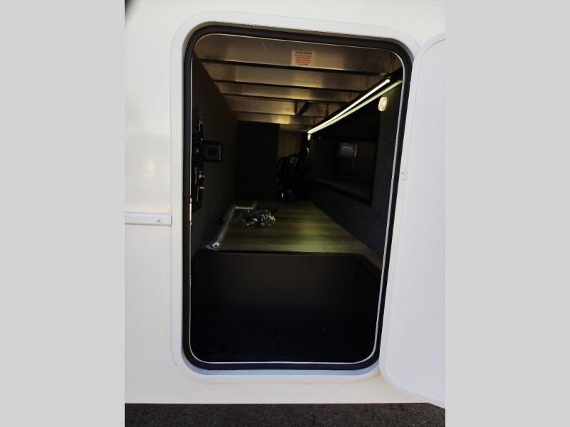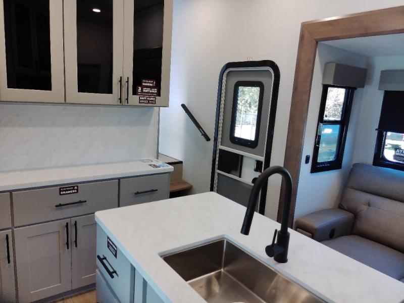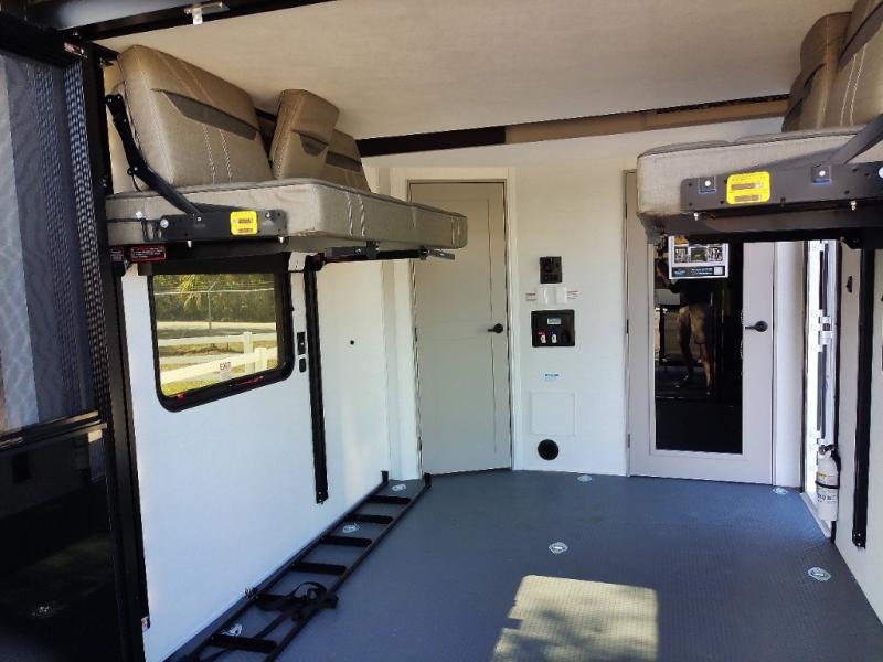 With any Valor All-Access toy hauler by Alliance RV you will be getting a travel trailer or fifth wheel with exceptional features at a great value! There is a painted fiberglass front cap, Mylar reinforced exterior seals, Azdel-backed fiberglass sidewalls, and a walk-on roof with a seamless PVC roof covering for added strength and durability. The 101" wide-body Benchmark chassis means you can bring along your larger toys, and the multipoint tie-down system will keep your toys safe and secure on the way to the campground. All of your power needs will be met with the Masters of 12 Volt Package that includes a 12V JBL sound system and USB charging stations throughout, plus the Off The Grid Pack comes with a 400 watt solar panel, 40 amp charge controller, and generator prep to keep you going all week long. Some of the interior comforts you'll enjoy are commercial grade vinyl flooring with no carpet so you can easily clean up, black cabinetry hardware, residential LED recessed ceiling lights, and so much more!