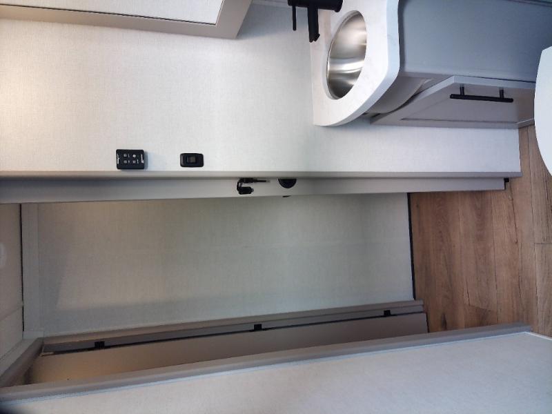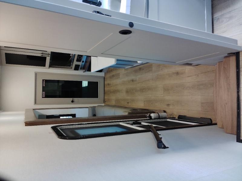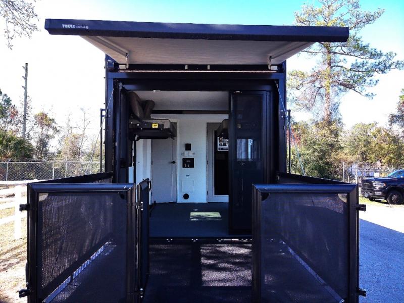 Load up the dirt bikes, pack your bags, and head to the campground in this spacious toy hauler. Once your toys are unloaded using the weather resistant ramp door, relax on the HappiJac roll-over sofas with a folding table in between, and this area can become your guests' bedroom at night since there is a drop-down queen bed, a half bath, plus an additional 30" x 72" bunk/loft bed. You will have the front bedroom all to yourselves that includes a king bed with an optional queen bed plus a wardrobe slide out to keep your space tidy. Everyone can meet in the main living area/kitchen for movie night with the HDTV and sofa slide out, while the chef of makes dinner on the three burner cooktop. There is also a hutch and pantry for storage and a kitchen island for more counter space!