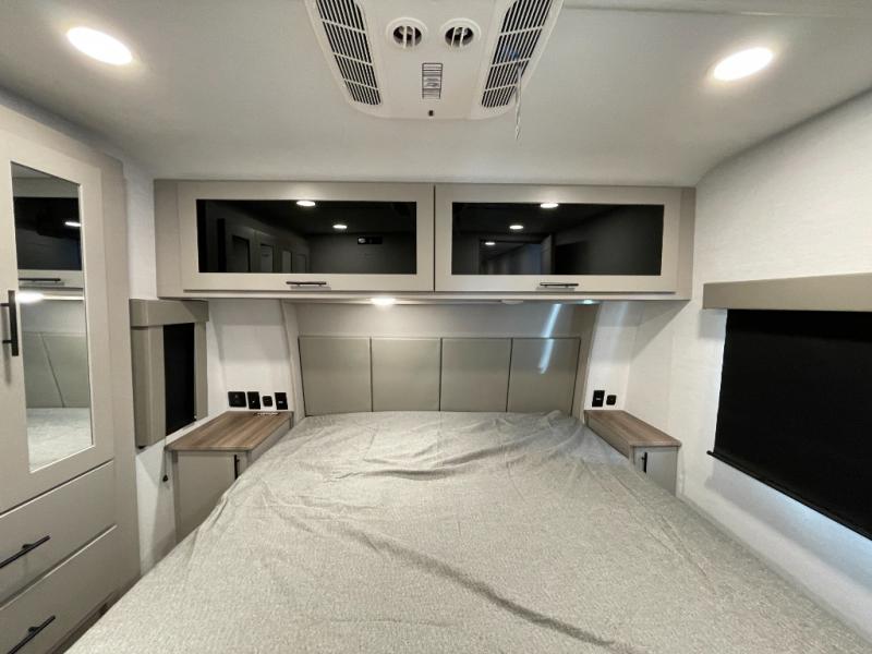 With any Valor All-Access toy hauler by Alliance RV, you will be getting a travel trailer or fifth wheel with exceptional features at a great value! There is a painted fiberglass front cap, Mylar reinforced exterior seals, Azdel-backed fiberglass sidewalls, and a walk-on roof with a seamless PVC roof covering for added strength and durability. The 101" wide-body Benchmark chassis means you can bring along your larger toys, and the multipoint tie-down system will keep your toys safe and secure on the way to the campground. All of your power needs will be met with the Masters of 12 Volt Package that includes a 12V JBL sound system and USB charging stations throughout, plus the Off the Grid Pack comes with a 400-watt solar panel, 30-amp charge controller, and generator prep to keep you going all week long. Some of the interior comforts you'll enjoy are commercial grade vinyl flooring with no carpet so you can easily clean up, black cabinetry hardware, residential LED recessed ceiling lights, and so much more!