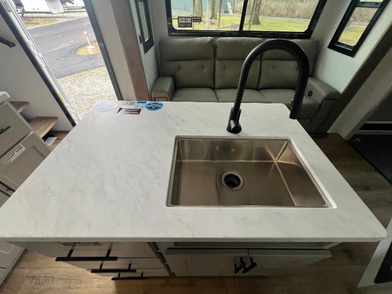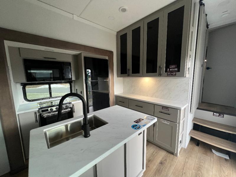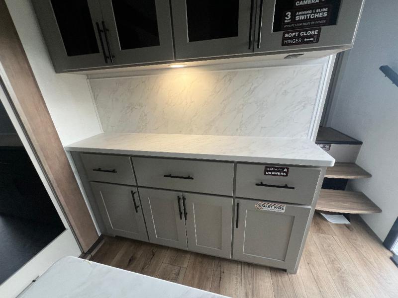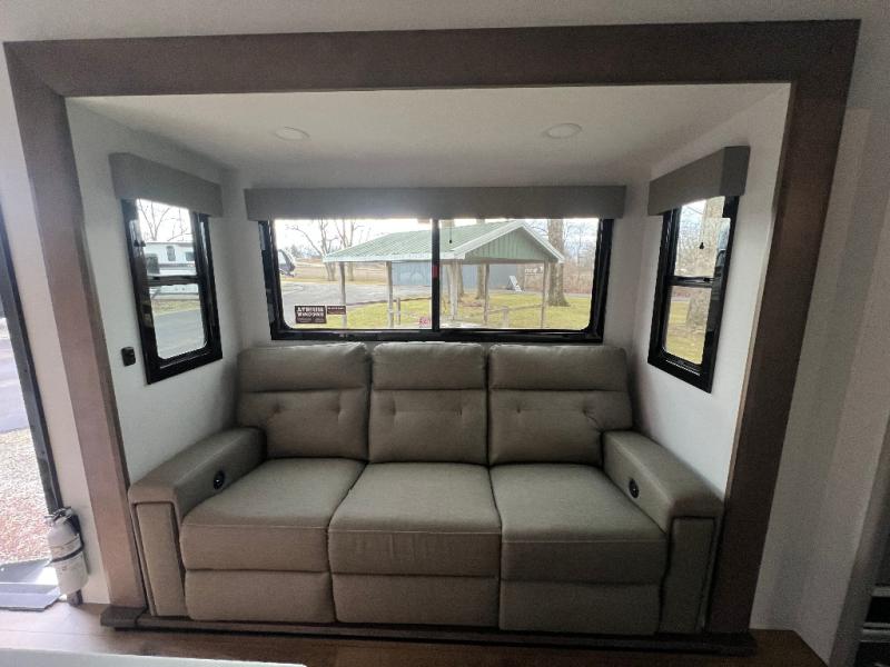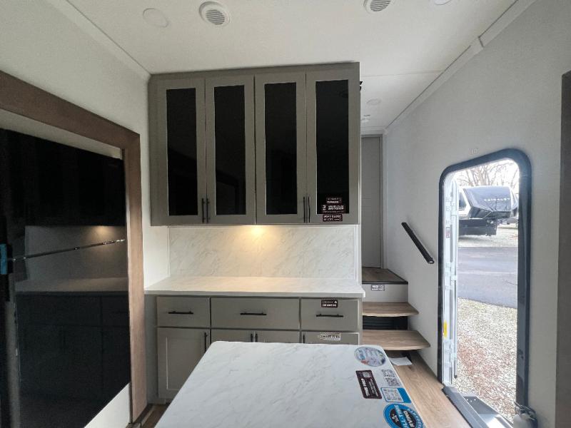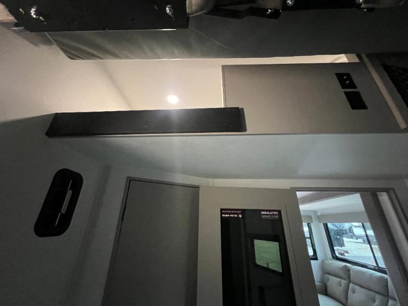 With any Valor All-Access toy hauler by Alliance RV, you will be getting a travel trailer or fifth wheel with exceptional features at a great value! There is a painted fiberglass front cap, Mylar reinforced exterior seals, Azdel-backed fiberglass sidewalls, and a walk-on roof with a seamless PVC roof covering for added strength and durability. The 101" wide-body Benchmark chassis means you can bring along your larger toys, and the multipoint tie-down system will keep your toys safe and secure on the way to the campground. All of your power needs will be met with the Masters of 12 Volt Package that includes a 12V JBL sound system and USB charging stations throughout, plus the Off the Grid Pack comes with a 400-watt solar panel, 30-amp charge controller, and generator prep to keep you going all week long. Some of the interior comforts you'll enjoy are commercial grade vinyl flooring with no carpet so you can easily clean up, black cabinetry hardware, residential LED recessed ceiling lights, and so much more!