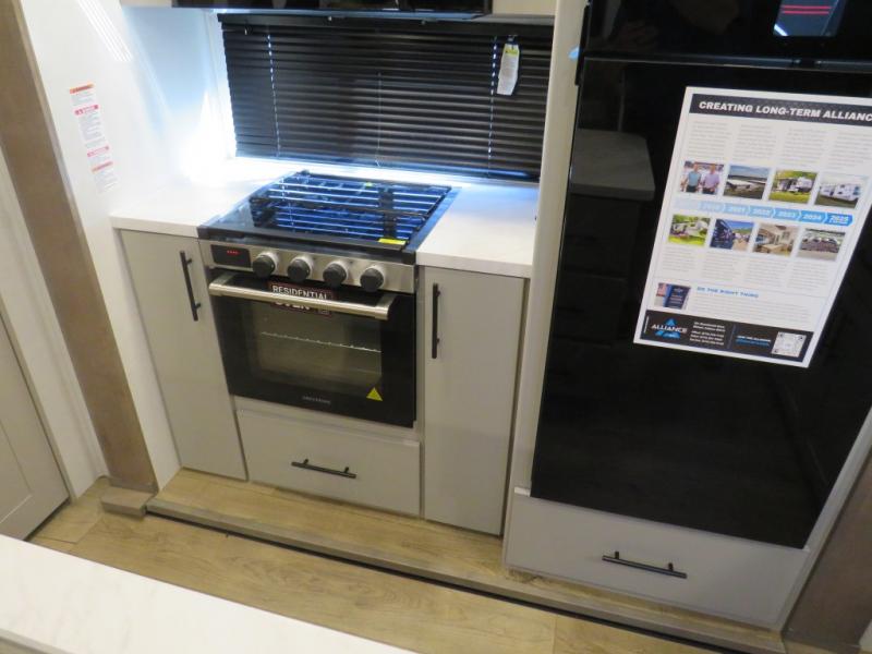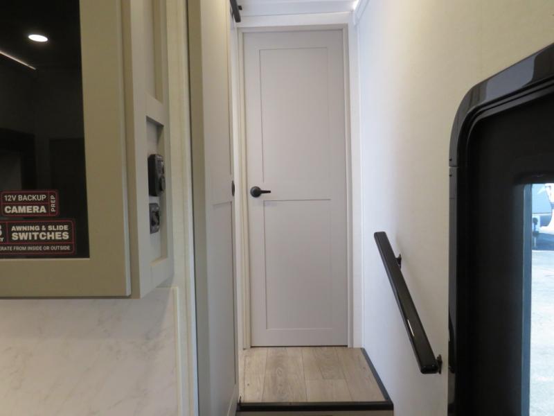 With any Valor All-Access toy hauler by Alliance RV you will be getting a travel trailer or fifth wheel with exceptional features at a great value! There is a painted fiberglass front cap, Mylar reinforced exterior seals, Azdel-backed fiberglass sidewalls, and a walk-on roof with a seamless PVC roof covering for added strength and durability. The 101" wide-body Benchmark chassis means you can bring along your larger toys, and the multipoint tie-down system will keep your toys safe and secure on the way to the campground. All of your power needs will be met with the Masters of 12 Volt Package that includes a 12V JBL sound system and USB charging stations throughout, plus the Off The Grid Pack comes with a 400 watt solar panel, 40 amp charge controller, and generator prep to keep you going all week long. Some of the interior comforts you'll enjoy are commercial grade vinyl flooring with no carpet so you can easily clean up, black cabinetry hardware, residential LED recessed ceiling lights, and so much more!