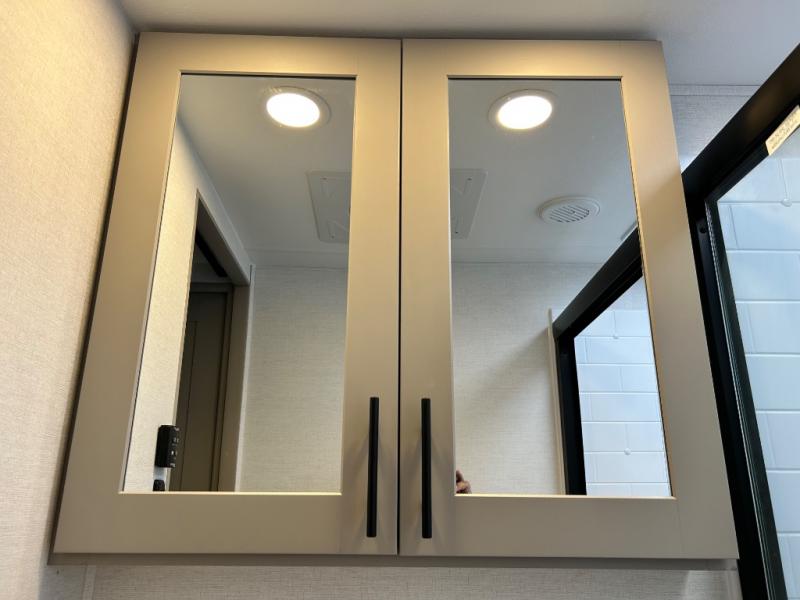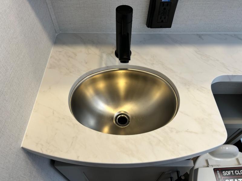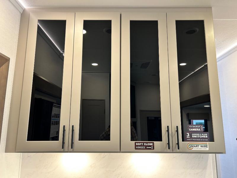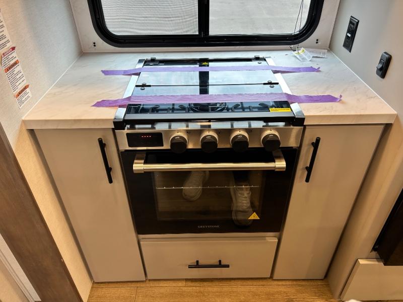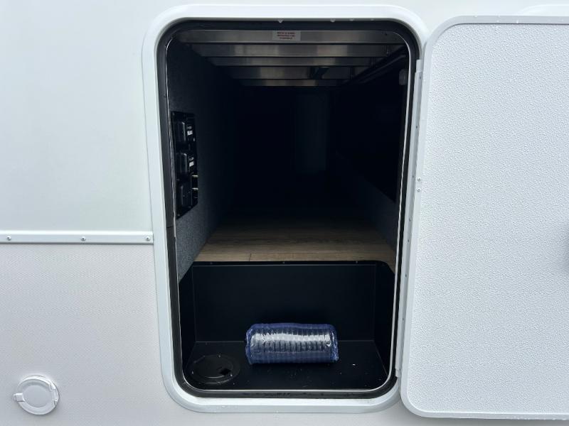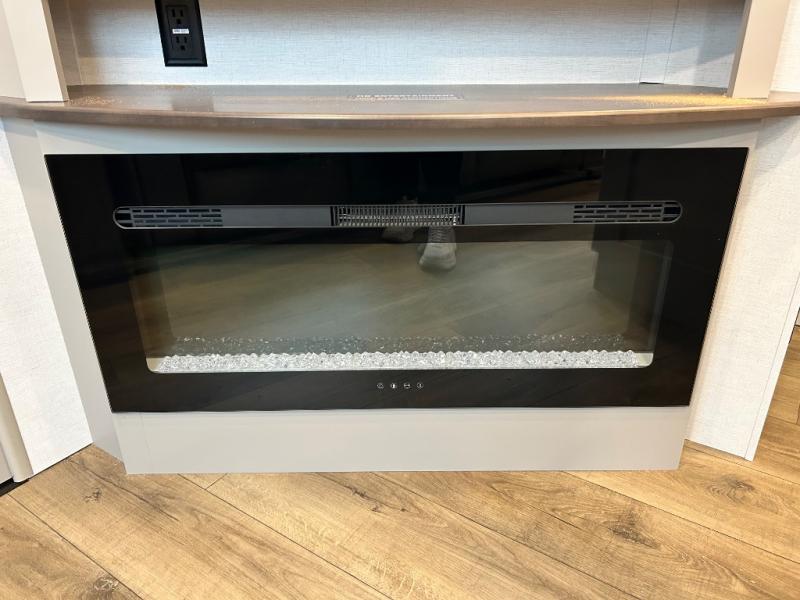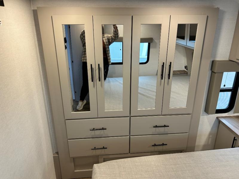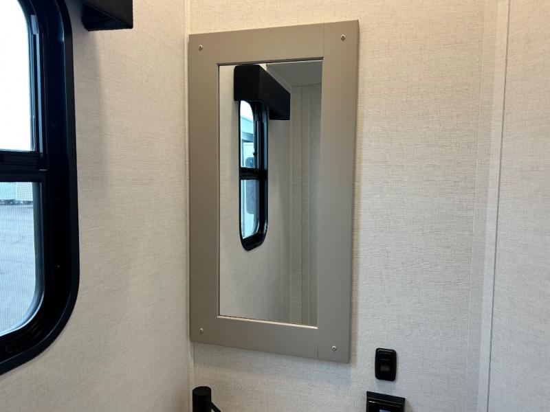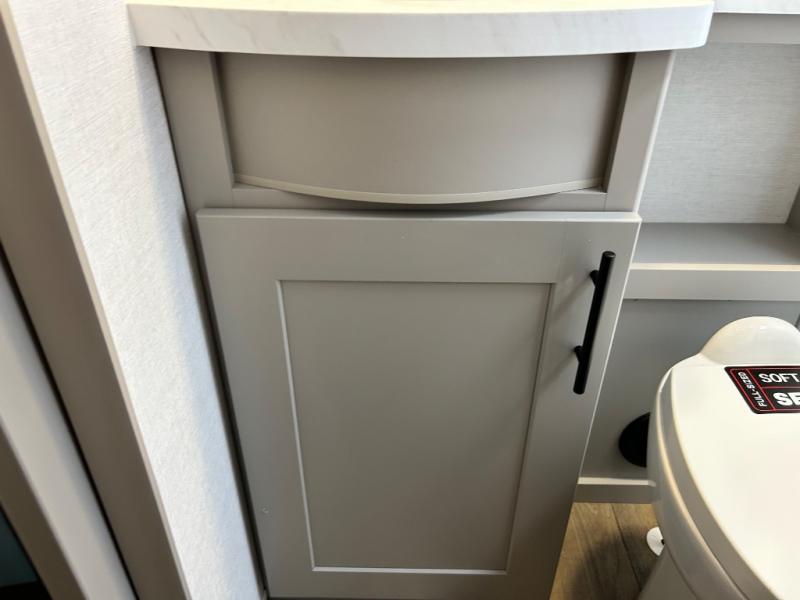 If you're needing more space for your toys, this toy hauler will meet your needs with a 14' separate garage! Once your toys are unloaded using the weather resistant ramp door, relax on the HappiJac roll-over sofas with a folding table in between, and this area can become your guests' bedroom at night since there is a drop-down queen bed, a half bath, plus an additional 30" x 72" bunk/loft bed. You will have the front bedroom all to yourselves that includes a king bed with an optional queen bed plus a wardrobe slide out to keep your space tidy. Everyone can meet in the main living area/kitchen for movie night with the HDTV and sofa slide out, while the chef of makes dinner on the three burner cooktop. There is also a hutch and pantry for storage and a kitchen island for more counter space!