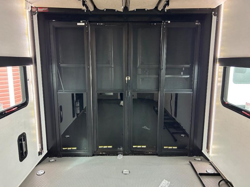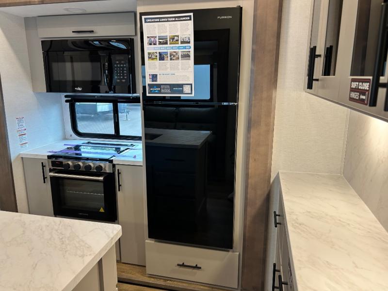 With any Valor All-Access toy hauler by Alliance RV you will be getting a travel trailer or fifth wheel with exceptional features at a great value! There is a painted fiberglass front cap, Mylar reinforced exterior seals, Azdel-backed fiberglass sidewalls, and a walk-on roof with a seamless PVC roof covering for added strength and durability. The 101" wide-body Benchmark chassis means you can bring along your larger toys, and the multipoint tie-down system will keep your toys safe and secure on the way to the campground. All of your power needs will be met with the Masters of 12 Volt Package that includes a 12V JBL sound system and USB charging stations throughout, plus the Off The Grid Pack comes with a 400 watt solar panel, 40 amp charge controller, and generator prep to keep you going all week long. Some of the interior comforts you'll enjoy are commercial grade vinyl flooring with no carpet so you can easily clean up, black cabinetry hardware, residential LED recessed ceiling lights, and so much more!