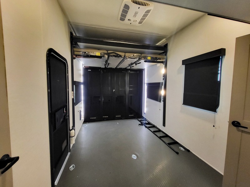 With any Valor All-Access toy hauler by Alliance RV you will be getting a travel trailer or fifth wheel with exceptional features at a great value! There is a painted fiberglass front cap, Mylar reinforced exterior seals, Azdel-backed fiberglass sidewalls, and a walk-on roof with a seamless PVC roof covering for added strength and durability. The 101" wide-body Benchmark chassis means you can bring along your larger toys, and the multipoint tie-down system will keep your toys safe and secure on the way to the campground. All of your power needs will be met with the Masters of 12 Volt Package that includes a 12V JBL sound system and USB charging stations throughout, plus the Off The Grid Pack comes with a 400 watt solar panel, 40 amp charge controller, and generator prep to keep you going all week long. Some of the interior comforts you'll enjoy are commercial grade vinyl flooring with no carpet so you can easily clean up, black cabinetry hardware, residential LED recessed ceiling lights, and so much more!