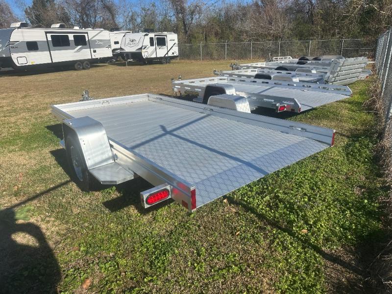 Standard Equipment • 3500# Rubber torsion axle (rated at 2990#) - No brakes - Easy lube hubs • ST205/75R14 Radial tires • Aluminum wheels • Aluminum fenders • Extruded aluminum floor • 7" Heavy-duty frame rail • Aluminum tongue, 48" long with 2" coupler • 7) Tie down loops (3 per side, 1 front center) • Tongue Handle • Receptacle Holder • Fender Steps • Swivel tongue jack, 1200# capacity • LED Lighting package, safety chains • Hydraulic dampener • Hydraulic gas shock for lift • Overall width = 92.5" • Overall length = 175" / 199" • 15° tilt