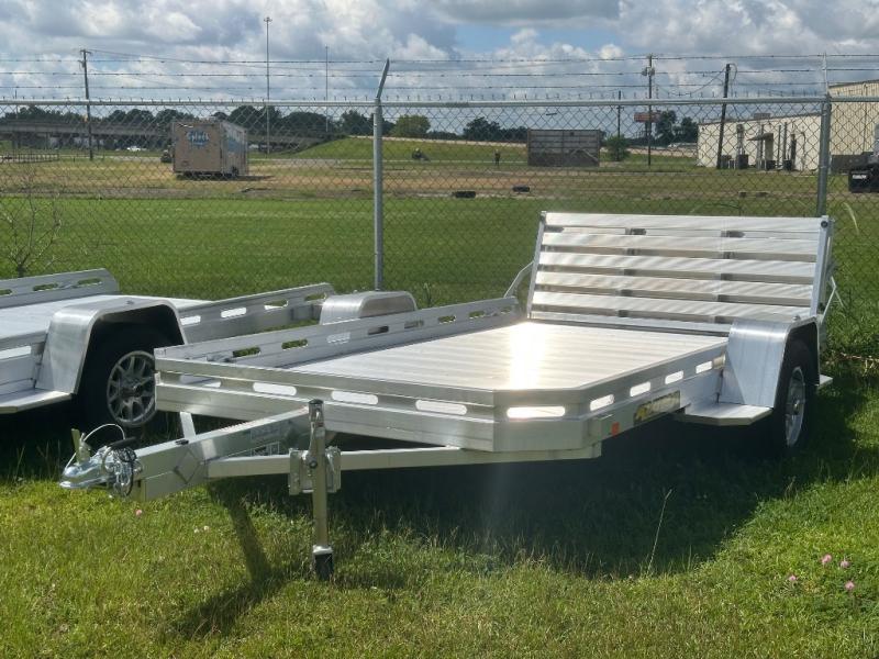CALL 318 445-6981 for more detailsStandard Equipment • 3500# Rubber torsion axle (rated at 2990#) - No brakes - Easy lube hubs • ST205/75R14 Radial tires • Aluminum wheels, 5-4.5 BHP • Aluminum fenders • Extruded aluminum floor • 8.5" Front & side retaining rails • A-Framed aluminum tongue, 48" long with 2" coupler • 4) Stake pockets (2 per side) • 4) Tie down loops (2 per side) • Tongue Handle • Receptacle Holder • Fender Steps • Swivel tongue jack, 1200# capacity • LED Lighting package, safety chains • Aluminum tailgate - 77.5" x 44" long / Bi-fold - 77.5" x 60" long • Overall width = 101.5" • Overall length =7710H - 176" / 7712H - 194.5"