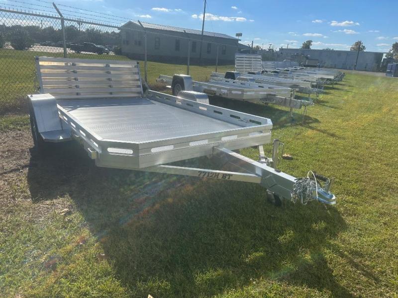 CALL 318 445-6981 for more detailsStandard Equipment • 3500# Rubber torsion axle (rated at 2990#) - No brakes - Easy lube hubs • ST205/75R14 Radial tires • Aluminum wheels, 5-4.5 BHP • Aluminum fenders • Extruded aluminum floor • 8.5" Front & side retaining rails • A-Framed aluminum tongue, 48" long with 2" coupler • 4) Stake pockets (2 per side) • 4) Tie down loops (2 per side) • Tongue Handle • Receptacle Holder • Fender Steps • Swivel tongue jack, 1200# capacity • LED Lighting package, safety chains • Aluminum tailgate - 77.5" x 44" long / Bi-fold - 77.5" x 60" long • Overall width = 101.5" • Overall length =7710H - 176" / 7712H - 194.5"