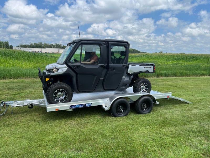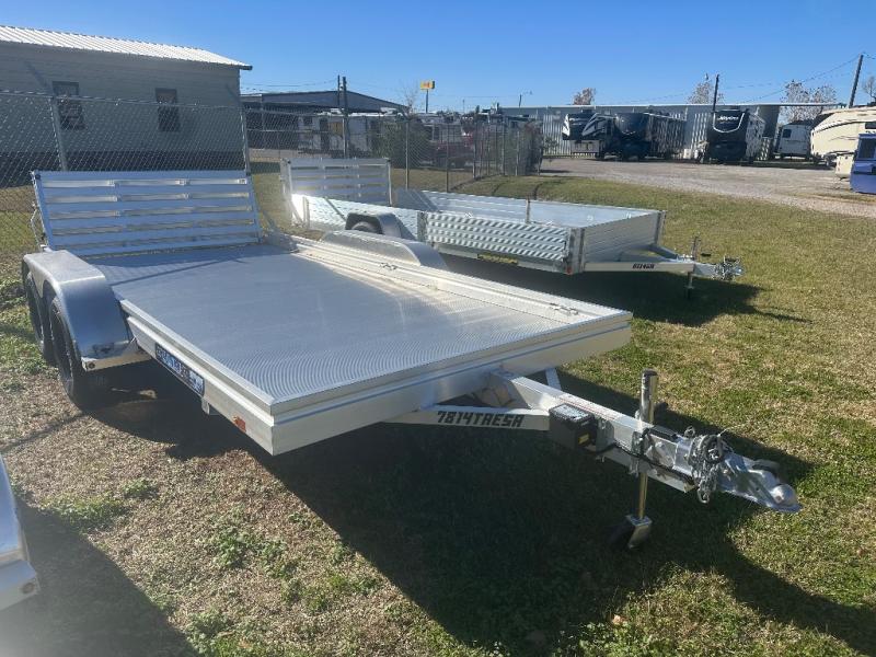 CALL 318 445-6981 for more detailsStandard Equipment • 2) 3500# Rubber torsion axle (rated at 7000#) - Electric brakes - Easy lube hubs • ST205/75R14 Radial tires • Steel wheels, 5-4.5 BHP • Removable aluminum fenders • Extruded aluminum floor • 7" Heavy duty frame rail • A-Framed aluminum tongue, 48" long with 2-5/16" coupler • 6) Tie down loops (3 per side) • 2) Rear stabilizer legs (1 per side) (Not standard on 7814, optional) • Swivel tongue jack, 1200# capacity • LED Lighting package, safety chains • Aluminum bi-fold tailgate - 77.5" x 60" long • Overall width = 101.5" • Overall length = 14' - 221" / 16' - 245" / 18' - 269" / 20' - 293"