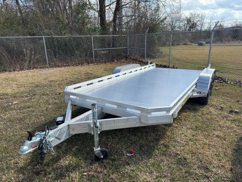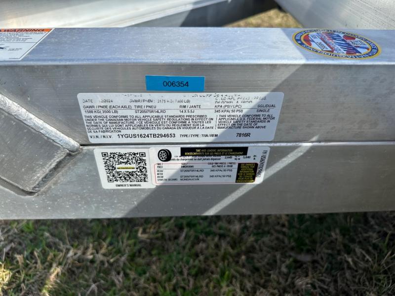 • 2) 3500# Rubber torsion axles - Easy lube hubs • Electric brakes, breakaway kit • ST205/75R14 Radial tires • Aluminum wheels, 5-4.5 BHP • Removable aluminum teardrop fenders • Extruded aluminum floor • 8.5" Front & side retaining rails • A-Framed aluminum tongue, 48" long with 2-5/16" coupler • 2) 5' Aluminum ramps with storage underneath (7812 has standard 4' ramps) OR Aluminum tailgate - full width x 59" long (no ramps) • 6) Stake pockets (3 per side) (7812 - 4) stake pockets, 2/side) • 4) Recessed tie rings, SS #2000 • 2) Aluminum rear stabilizer jacks (Not standard on 7812 and 7814, optional) • Swivel tongue jack, 1500# capacity • LED Lighting package, safety chains • Overall width = 101.5" • Overall length = 197" / 226" / 245" / 272" / 294" / 322" / 346" Bed Size 6'6" x 16' (77.5" x 192")