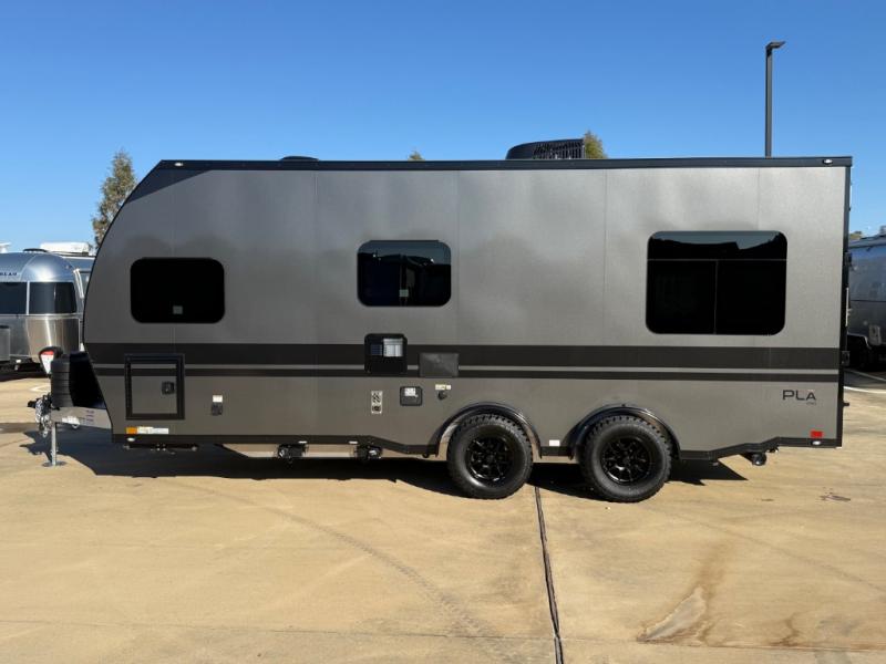 With any PLA 450 toy hauler travel trailer by ATC Trailers, you will enjoy lightweight towing and a configurable garage space for your toys, gear, and more! The all-aluminum and composite construction features no wood so you won't have to worry about rot, and the All-Weather Protection Package means you can extend your camping season. There is a 200-watt solar panel with a solar port, a heated lithium battery, plus 12V outlets to keep your adventures going. Outside, you'll find storage for your gear, a power awning with a light strip, sleek frameless dual pane tinted windows, and more convenient features. The interior is just as accommodating with decorative backsplash, configurable furniture track system, blackout roller shades, and residential solid surface countertops!