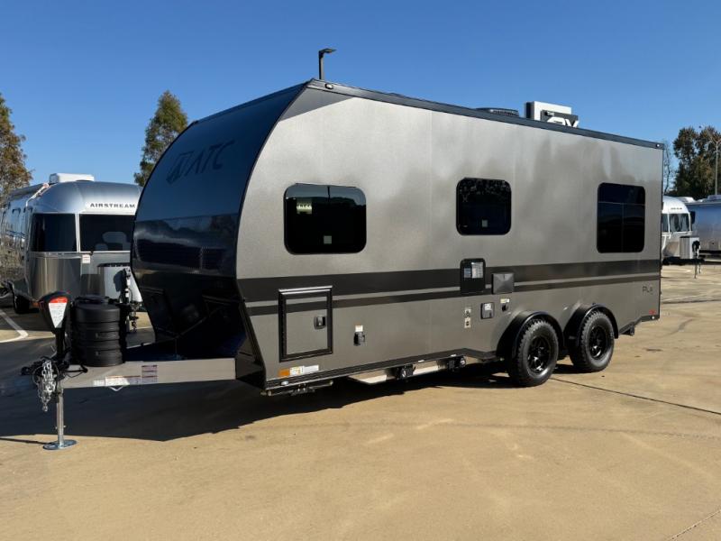 With any PLA 450 toy hauler travel trailer by ATC Trailers, you will enjoy lightweight towing and a configurable garage space for your toys, gear, and more! The all-aluminum and composite construction features no wood so you won't have to worry about rot, and the All-Weather Protection Package means you can extend your camping season. There is a 200-watt solar panel with a solar port, a heated lithium battery, plus 12V outlets to keep your adventures going. Outside, you'll find storage for your gear, a power awning with a light strip, sleek frameless dual pane tinted windows, and more convenient features. The interior is just as accommodating with decorative backsplash, configurable furniture track system, blackout roller shades, and residential solid surface countertops!