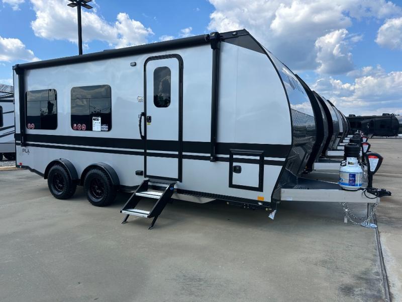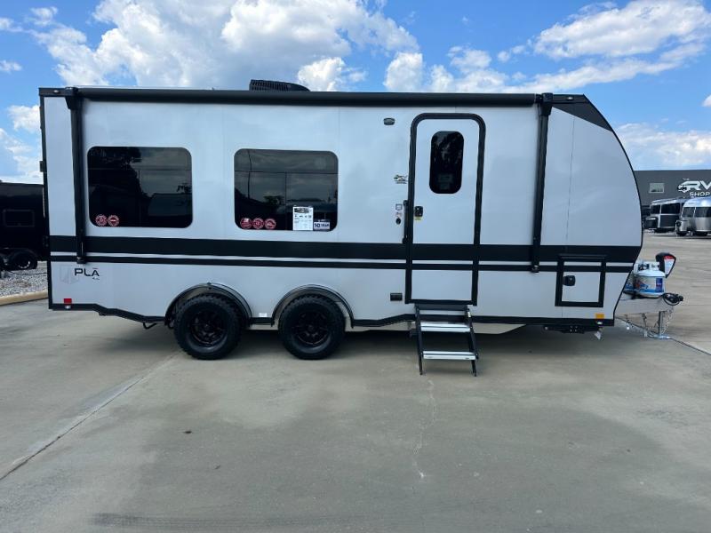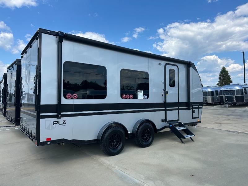 With any PLA 450 toy hauler travel trailer by ATC Trailers, you will enjoy lightweight towing and a configurable garage space for your toys, gear, and more! The all-aluminum and composite construction features no wood so you won't have to worry about rot, and the All-Weather Protection Package means you can extend your camping season. There is a 200-watt solar panel with a solar port, a heated lithium battery, plus 12V outlets to keep your adventures going. Outside, you'll find storage for your gear, a power awning with a light strip, sleek frameless dual pane tinted windows, and more convenient features. The interior is just as accommodating with decorative backsplash, configurable furniture track system, blackout roller shades, and residential solid surface countertops!