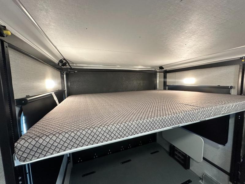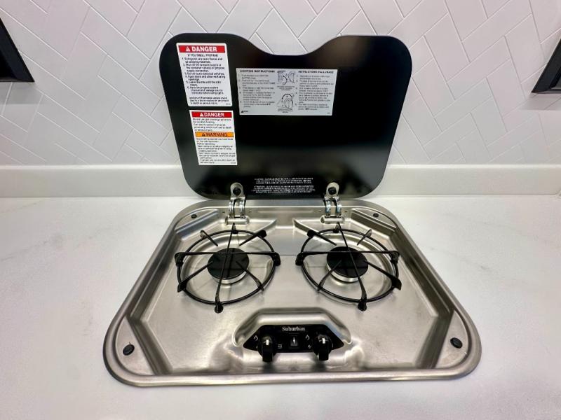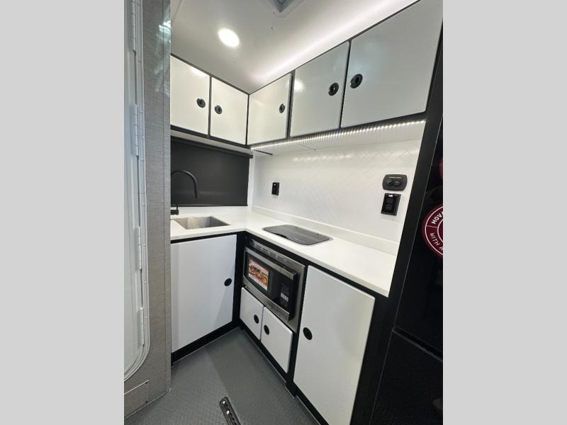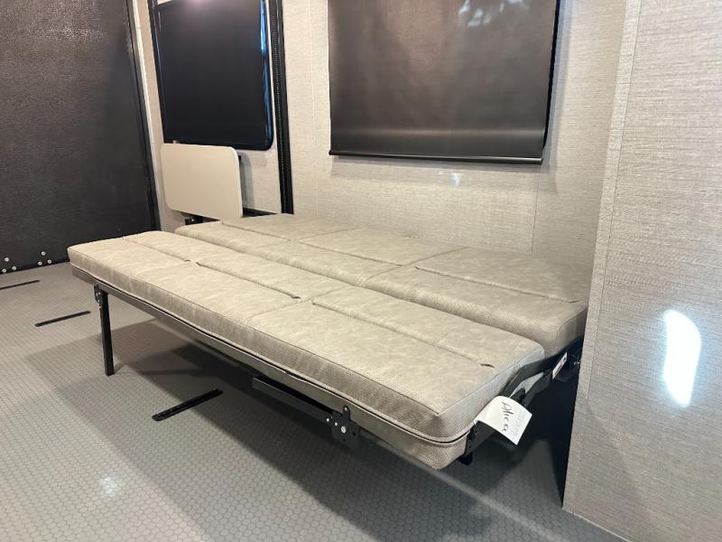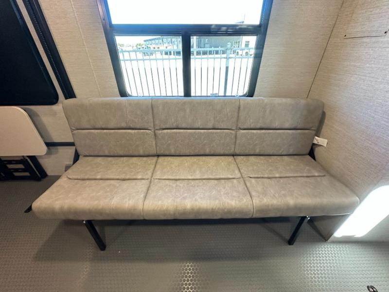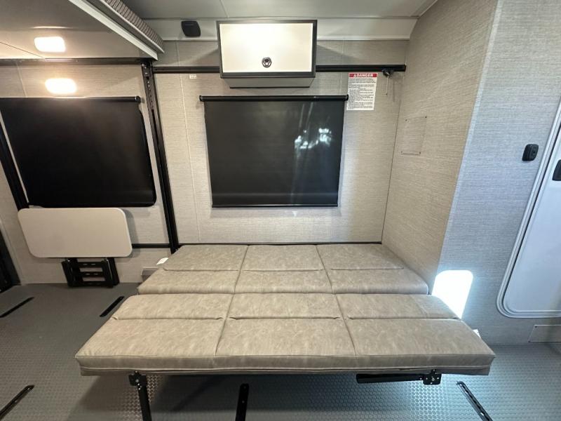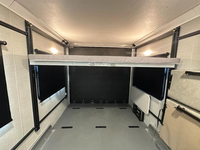 If you're ready to escape your busy weeks for weekends at the lake, this toy hauler is for you! Your kayaks will fit perfectly when you use the space all the way up to the front kitchen, and there is a cable-less rear ramp door for easy unloading. There is also an Airline Track tie-down system to keep your gear secure, and an optional Happijac queen bed can be added if you need additional sleeping space other than the sleeper sofa. The front kitchen includes a two-burner cooktop, a convection microwave, and a 12V refrigerator to keep cold items fresh.