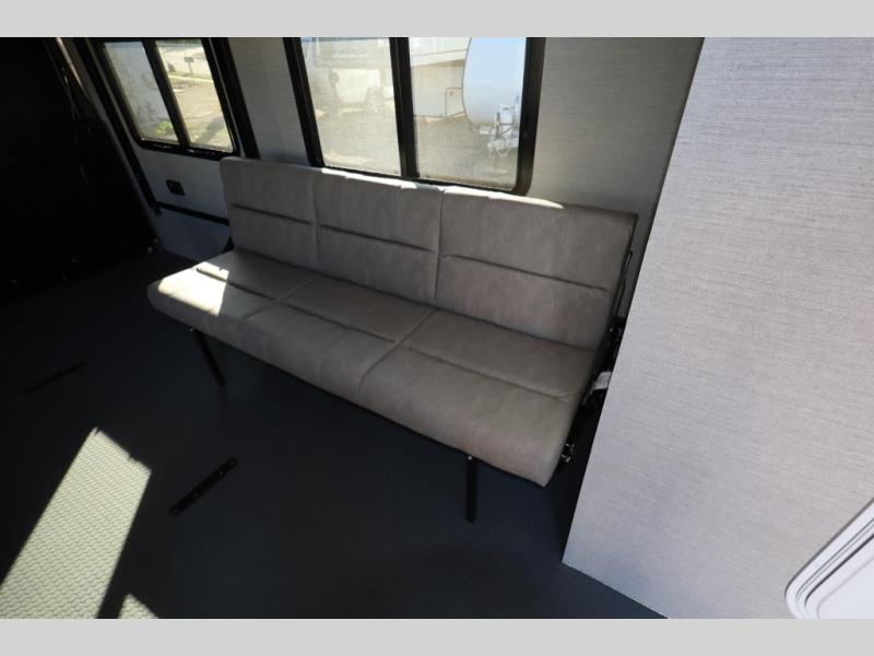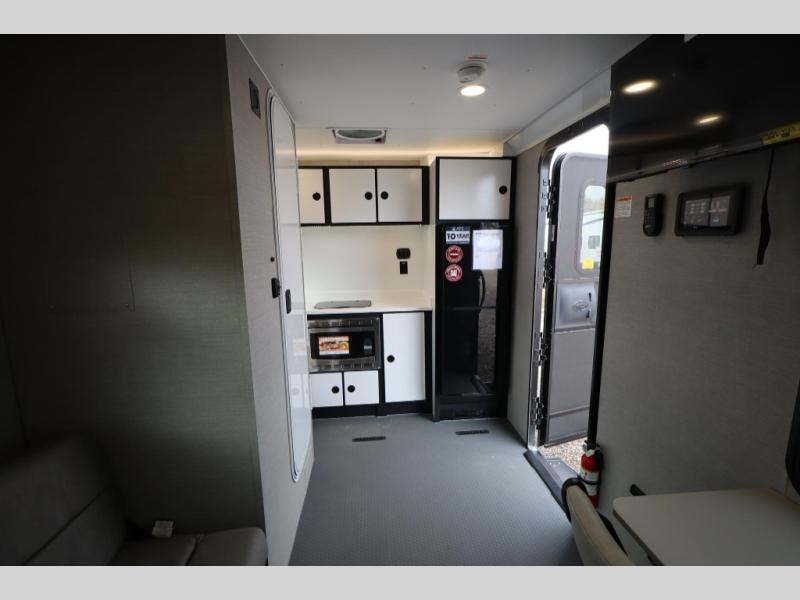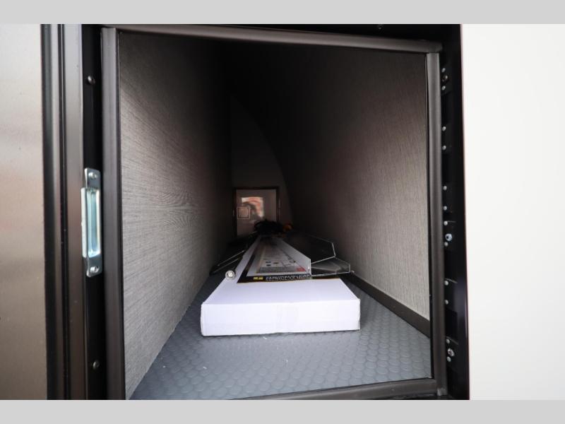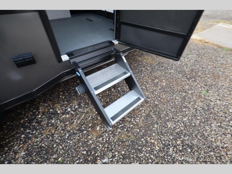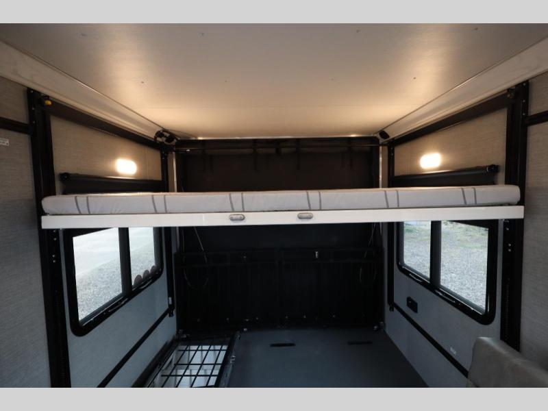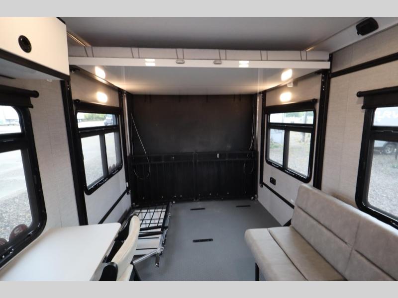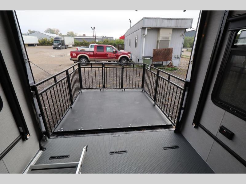If you're ready to escape your busy weeks for weekends at the lake, this toy hauler is for you! Your kayaks will fit perfectly when you use the space all the way up to the front kitchen, and there is a cable-less rear ramp door for easy unloading. There is also an Airline Track tie-down system to keep your gear secure, and an optional Happijac queen bed can be added if you need additional sleeping space other than the sleeper sofa. The front kitchen includes a two-burner cooktop, a convection microwave, and a 12V refrigerator to keep cold items fresh.