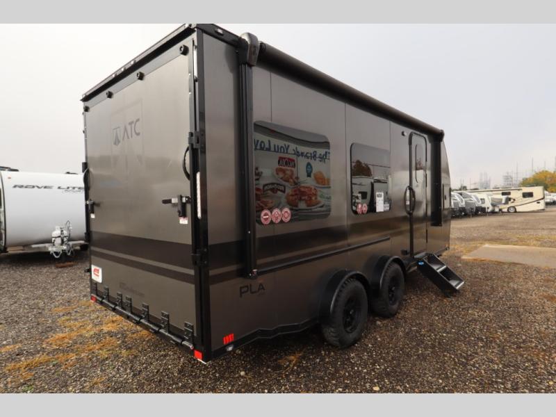 Haul more and camp smarter with 16 foot 8 inches of cargo space, a front kitchen, and ATC all aluminum no wood construction.