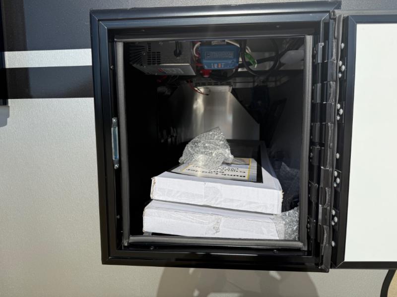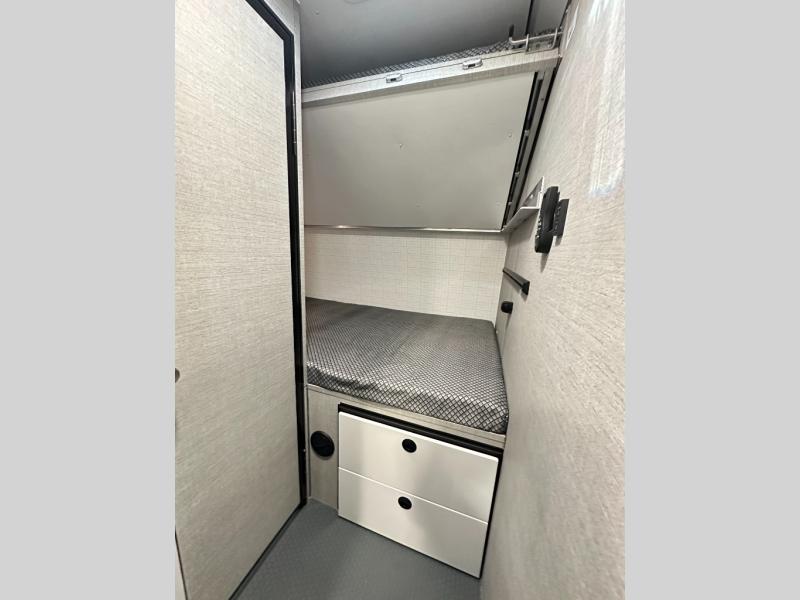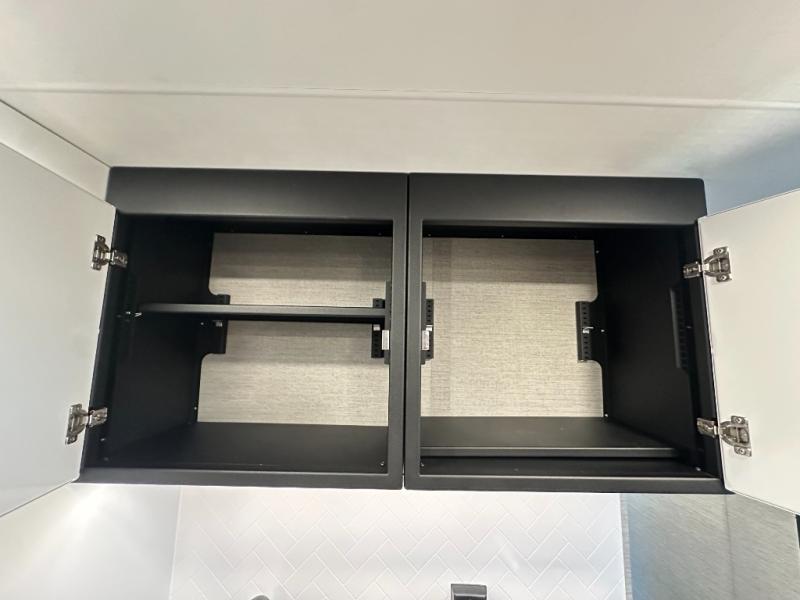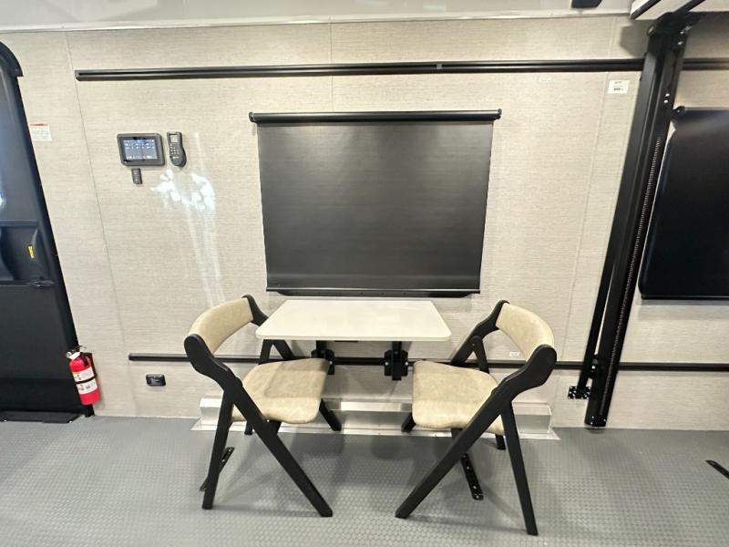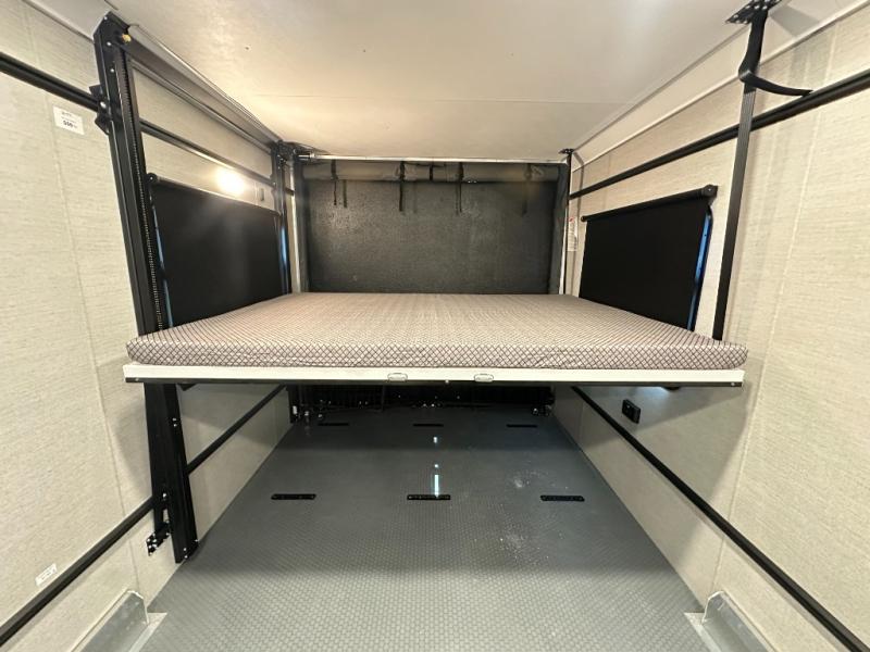 With any PLA 450 toy hauler travel trailer by ATC Trailers, you will enjoy lightweight towing and a configurable garage space for your toys, gear, and more! The all-aluminum and composite construction features no wood so you won't have to worry about rot, and the All-Weather Protection Package means you can extend your camping season. There is a 200-watt solar panel, a 100-watt inverter, and 120V/USB outlets to keep your adventures going. Outside, you'll find storage for your gear, a power awning with a light strip, sleek frameless dual pane windows, and more convenient features. The interior is just as accommodating with aluminum cabinets, dimmable can ceiling lights, configurable furniture track system, and solid surface countertops!