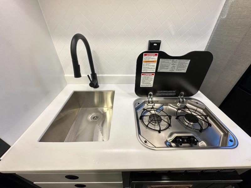 This toy hauler travel trailer is perfect for outdoor enthusiasts and thrill-seekers. The 15' garage is the ideal space for hauling your favorite toys, whether it's ATVs, dirt bikes, or kayaks. With plenty of room to store your gear, you'll be ready for whatever adventure comes your way. Enjoy cooking up a storm with the cooktop, microwave, and fridge. The sink provides a convenient spot for cleaning up after a long day of play. The wet bath is a practical and efficient space for getting cleaned up, and the bunk beds provide a comfortable spot to rest and relax after a long day of play.