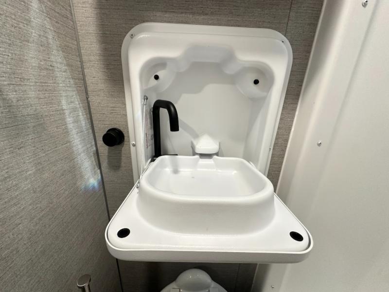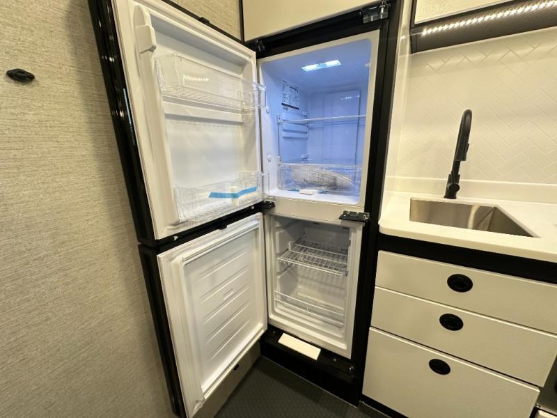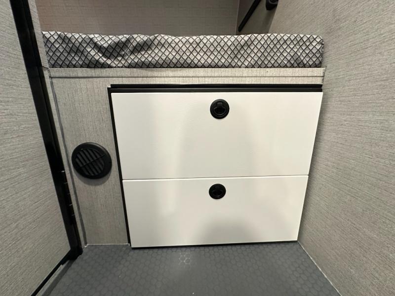 With any PLA 450 toy hauler travel trailer by ATC Trailers, you will enjoy lightweight towing and a configurable garage space for your toys, gear, and more! The all-aluminum and composite construction features no wood so you won't have to worry about rot, and the All-Weather Protection Package means you can extend your camping season. There is a 200-watt solar panel, a 100-watt inverter, and 120V/USB outlets to keep your adventures going. Outside, you'll find storage for your gear, a power awning with a light strip, sleek frameless dual pane windows, and more convenient features. The interior is just as accommodating with aluminum cabinets, dimmable can ceiling lights, configurable furniture track system, and solid surface countertops!