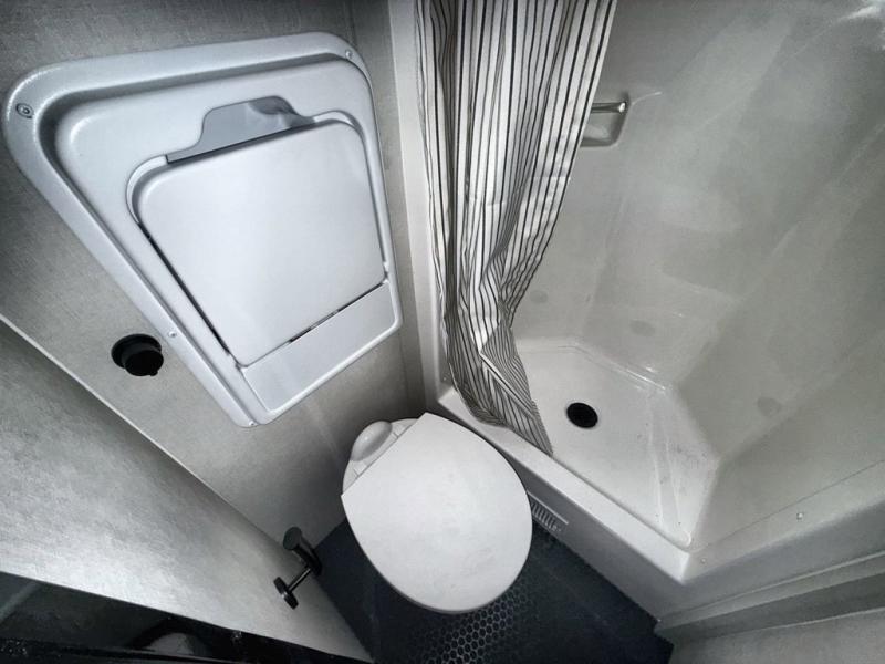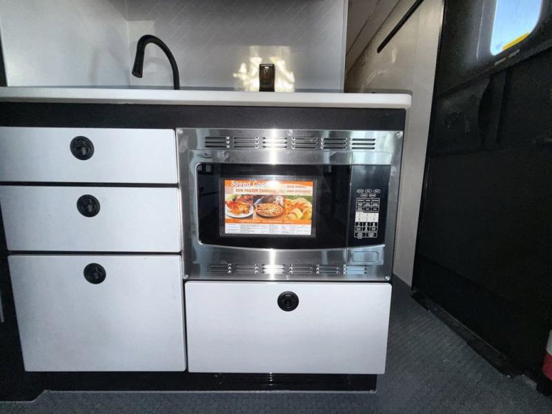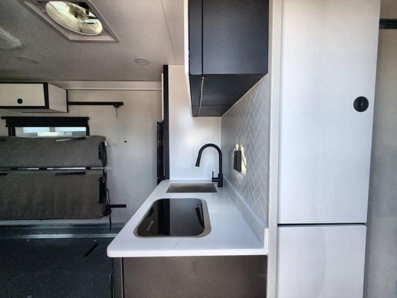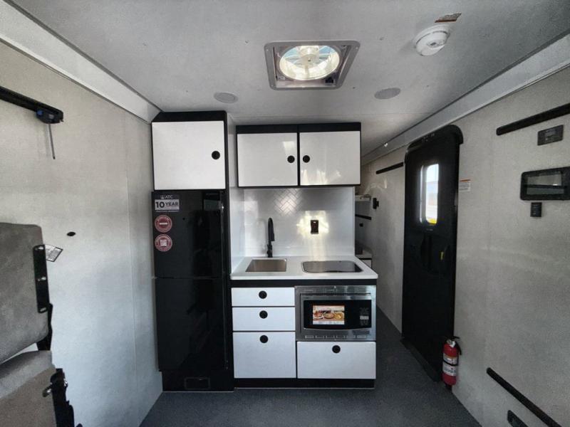 With any PLA 450 toy hauler travel trailer by ATC Trailers, you will enjoy lightweight towing and a configurable garage space for your toys, gear, and more! The all-aluminum and composite construction features no wood so you won't have to worry about rot, and the All-Weather Protection Package means you can extend your camping season. There is a 200-watt solar panel, a 100-watt inverter, and 120V/USB outlets to keep your adventures going. Outside, you'll find storage for your gear, a power awning with a light strip, sleek frameless dual pane windows, and more convenient features. The interior is just as accommodating with aluminum cabinets, dimmable can ceiling lights, configurable furniture track system, and solid surface countertops!