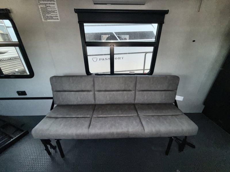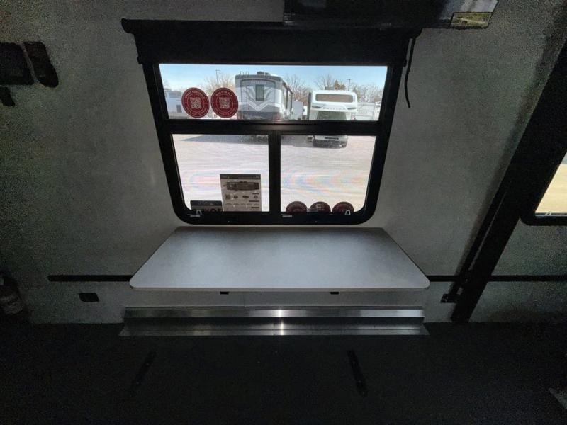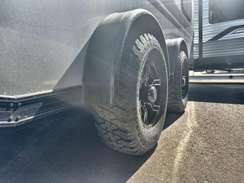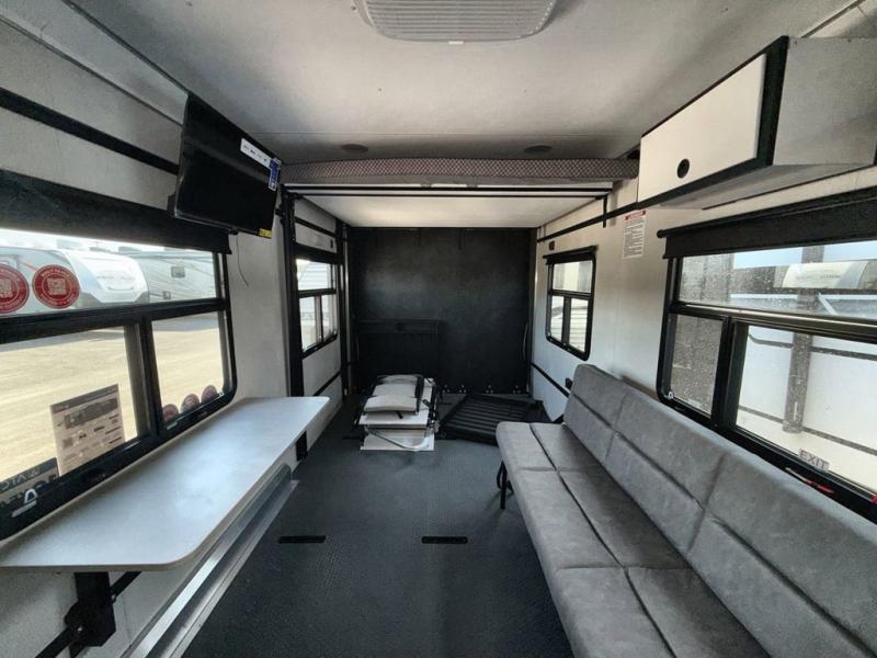 This toy hauler travel trailer is perfect for outdoor enthusiasts and thrill-seekers. The 15' garage is the ideal space for hauling your favorite toys, whether it's ATVs, dirt bikes, or kayaks. With plenty of room to store your gear, you'll be ready for whatever adventure comes your way. Enjoy cooking up a storm with the cooktop, microwave, and fridge. The sink provides a convenient spot for cleaning up after a long day of play. The wet bath is a practical and efficient space for getting cleaned up, and the bunk beds provide a comfortable spot to rest and relax after a long day of play.