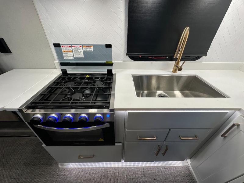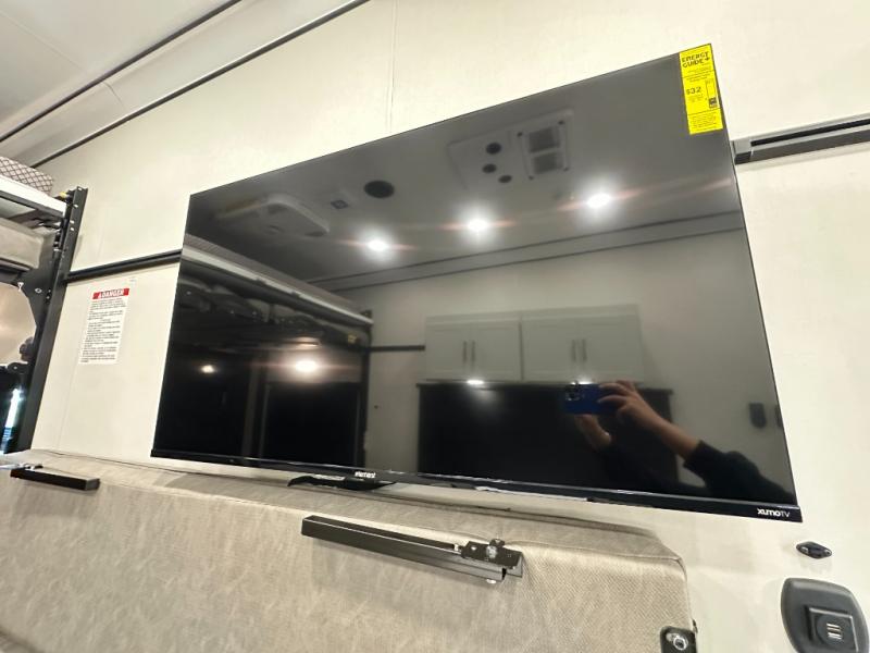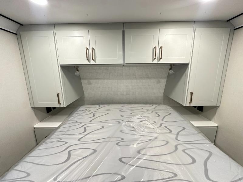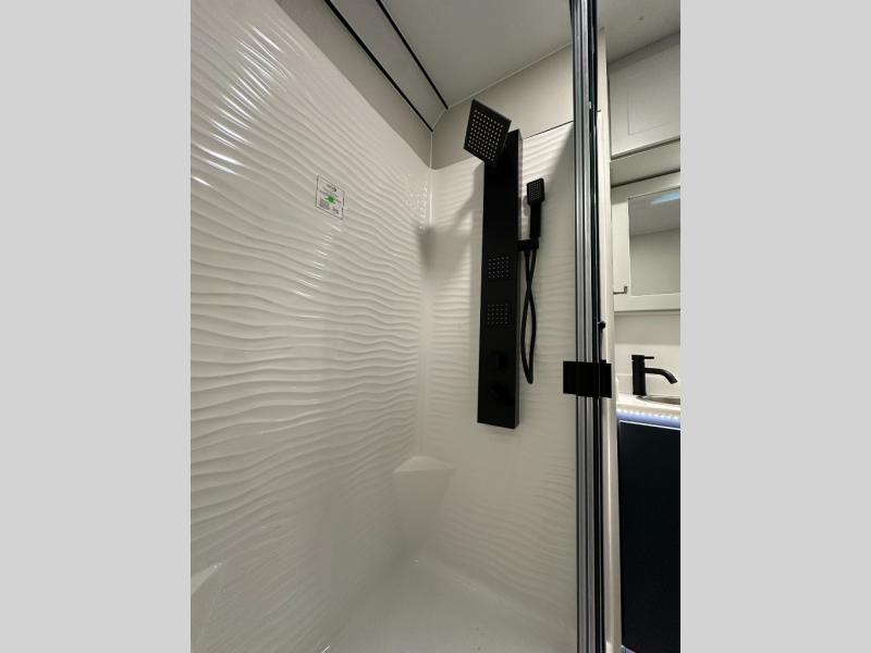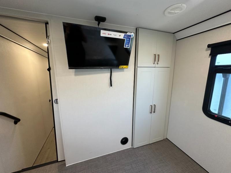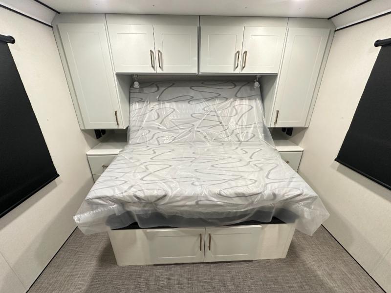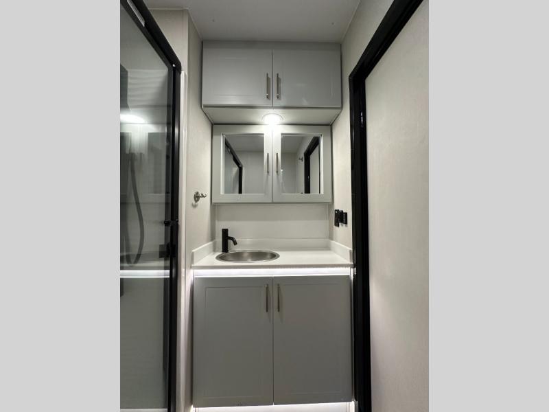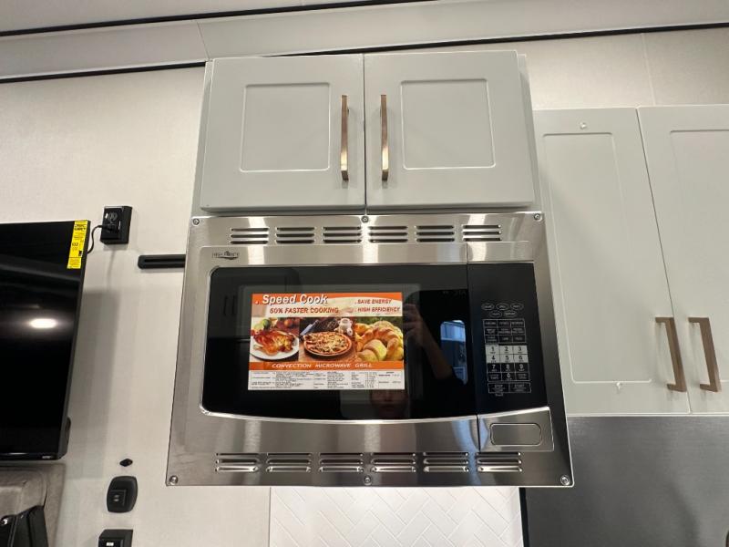 Start a new adventure in this spacious toy hauler that can sleep 2-10 depending on the options you choose to add! Once your toys are unloaded using the cableless rear ramp door, you can head out on a trail or two. You'll find a residential queen bed with storage in the front bedroom, along with storage space for your things and TV prep if you want to add a television. The full bath includes a spa/jet shower fixture that is sure to be nice after a day of riding the trails, and there is a glass shower door for added luxury. Head to the kitchen where you can whip up a meal for your crew on the LP three burner cooktop or in the convection microwave, and you can dine at the dinette with four chairs. If you'd like to get some fresh air, take your plate outdoors to sit under the power awning with a light strip!