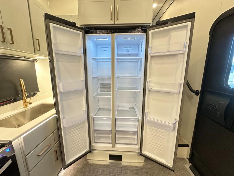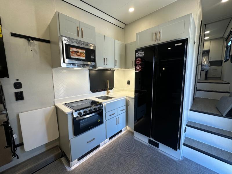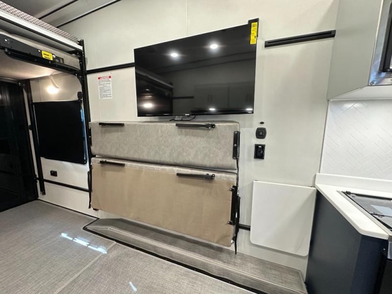 With any PLA 750 toy hauler fifth wheel by ATC Trailers, you will find a durable unit made to last thanks to the 6-sided welded aluminum frame, enclosed underbelly, composite ramp door, and more! The LifeTrac modular component system lets you configure your garage how you need it, and there are also tie-downs with three rows of Airline tracks with covers and an exterior pass-through storage for all the riding gear! Inside, you'll enjoy aluminum cabinets with solid surface countertops in the kitchen and bath, dimmable can ceiling lights, composite with commercial-grade vinyl flooring, and a porcelain toilet to name a few stand-out features. You can further customize your toy hauler by adding one or more of the available options, such as a deck package, 36 gallon fuel station, happijac sofa sleepers, an exterior shower, and more!