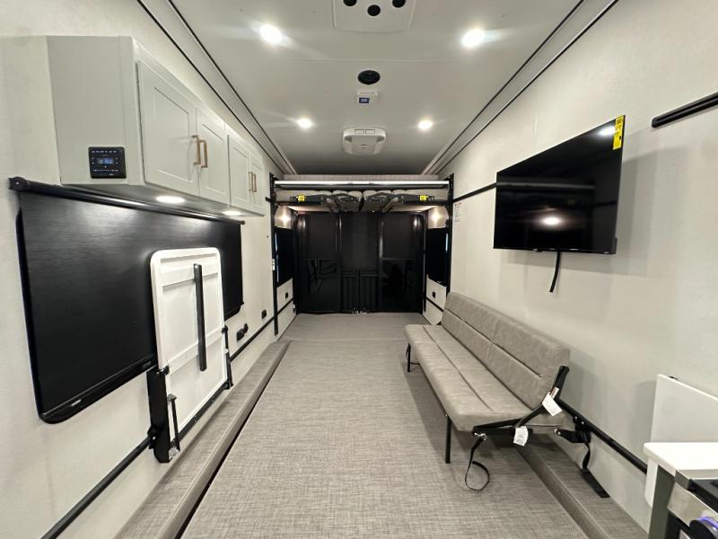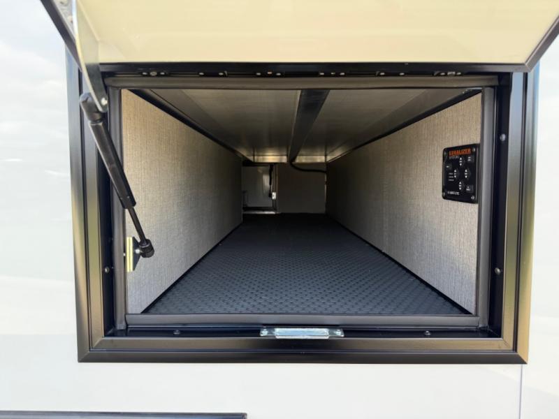 With any PLA 750 toy hauler fifth wheel by ATC Trailers, you will find a durable unit made to last thanks to the 6-sided welded aluminum frame, enclosed underbelly, composite ramp door, and more! The LifeTrac modular component system lets you configure your garage how you need it, and there are also tie-downs with three rows of Airline tracks with covers and an exterior pass-through storage for all the riding gear! Inside, you'll enjoy aluminum cabinets with solid surface countertops in the kitchen and bath, dimmable can ceiling lights, composite with commercial-grade vinyl flooring, and a porcelain toilet to name a few stand-out features. You can further customize your toy hauler by adding one or more of the available options, such as a deck package, 36 gallon fuel station, happijac sofa sleepers, an exterior shower, and more!