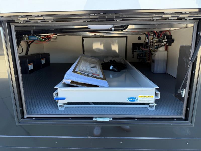 With any PLA 750 toy hauler fifth wheel by ATC Trailers, you will find a durable unit made to last thanks to the 6-sided welded aluminum frame, enclosed underbelly, composite ramp door, and more! The LifeTrac modular component system lets you configure your garage how you need it, and there are also tie-downs with three rows of Airline tracks with covers and an exterior pass-through storage for all the riding gear! Inside, you'll enjoy aluminum cabinets with solid surface countertops in the kitchen and bath, dimmable can ceiling lights, composite with commercial-grade vinyl flooring, and a porcelain toilet to name a few stand-out features. You can further customize your toy hauler by adding one or more of the available options, such as a deck package, 36 gallon fuel station, happijac sofa sleepers, an exterior shower, and more!