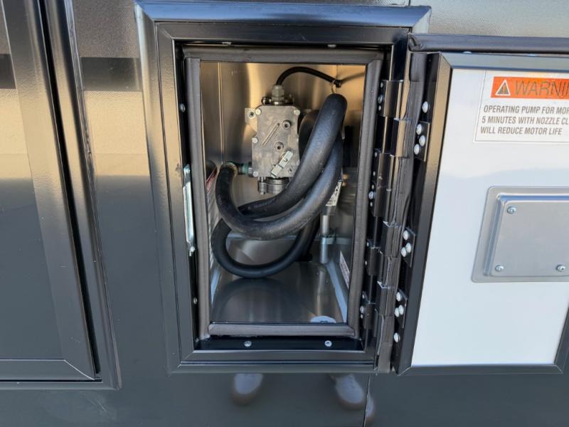 Start a new adventure in this spacious toy hauler that can sleep 2-12 depending on the options you choose to add! Once your toys are unloaded using the cableless rear ramp door, you can head out on a trail or two. You'll find a residential queen bed with storage in the front bedroom, along with a large front closet and TV prep if you want to add a television. The full bath includes a spa/jet shower fixture that is sure to be nice after a day of riding the trails, and there is a glass shower door for added luxury. Head to the kitchen where you can whip up a meal for your crew on the LP three burner cooktop or in the convection microwave, and you can dine at the dinette with four chairs. If you'd like to get some fresh air, take your plate outdoors to sit under the power awning with a light strip!