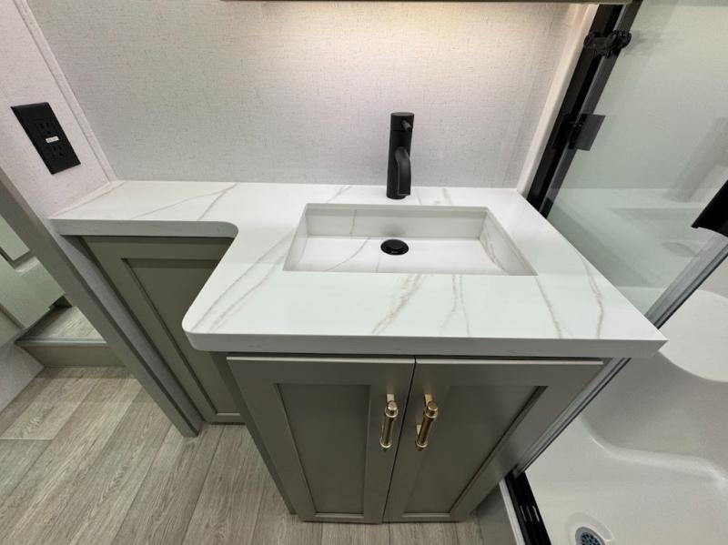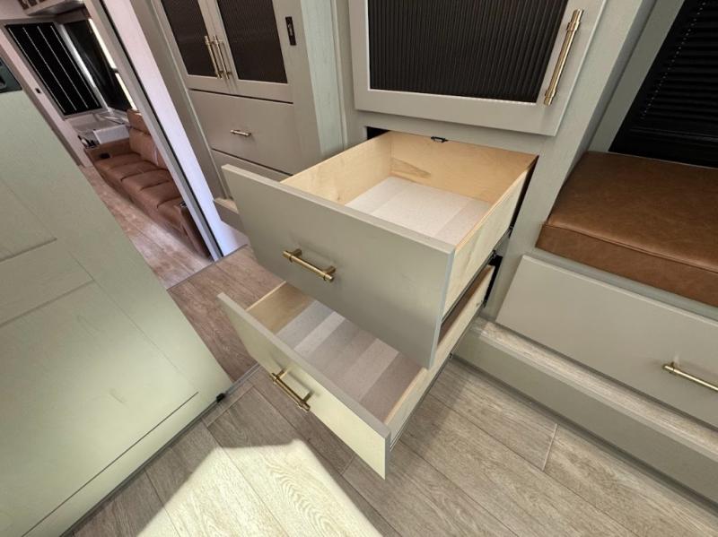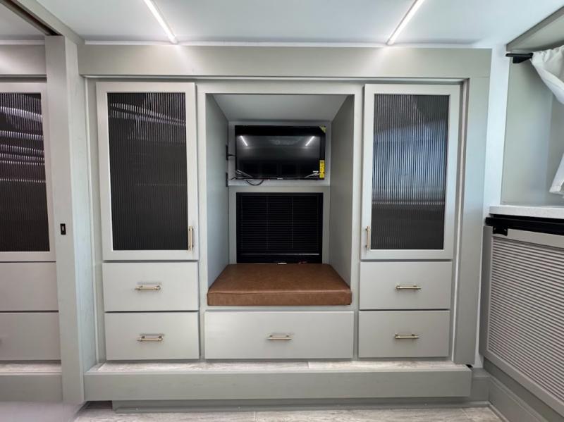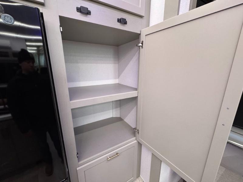 With any Imperium fifth wheel by Axiom RV, you will find comfort at every turn! The Curt touring coil suspension system with a Curt coil pin box provides smooth towing from home to campground, and the Lippert 6-point hydraulic leveling system will make set up a breeze. There are also Lippert solid step triple entry steps, a Pathfinder lighting system integrated within the turn signals, an extended latch entry door lock system, and a 200-watt solar panel for off-grid capabilities. These features are found within the Lux Package and Essential Package, while the AX Comfort Package includes hardwood cabinet doors and solid surface kitchen countertops. There is also a Fogotti on-demand water heater, a Freedom pass-through storage, and sleek tinted frameless windows. Available options that can be chosen include a second solar panel, a Splendide washer/dryer, a 6K LP generator, and more!
