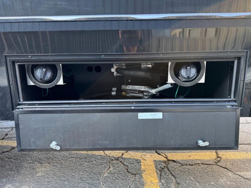With any Vendetta toy hauler fifth wheel by Axiom RV, you will find innovation and comfort at every turn! The Curt Touring Coil Suspension System with a Curt pin box will provide smooth towing from home to campground, and the deluxe graphics with marine grade fiberglass exterior is sure to be eye-catching. These features are found within the Lux Package, along with a Pathfinder lighting system with integrated turn signals, Lippert solid step triple entry steps, and a low alloy steel construction that is stronger than the competition! The Essential Package features a Lippert 6-point hydraulic leveling system to have you set up at camp in no-time, and the 200-watt solar panel with a 2000-watt inverter provides off-grid capabilities. Solid surface kitchen countertops are included with the AX Comfort Package, along with a Fogotti on-demand water heater, a freedom pass-through storage, Starlink internet prep, and hardwood cabinet doors with slow close hidden hinges.