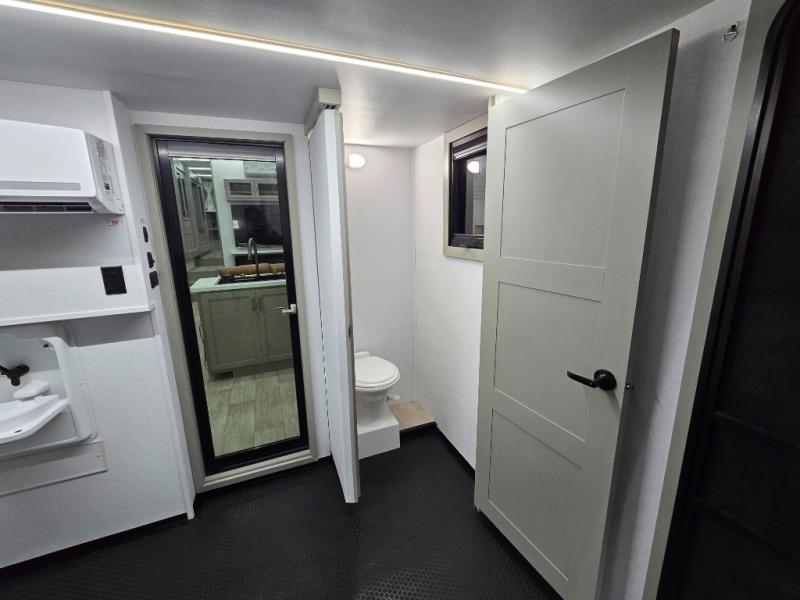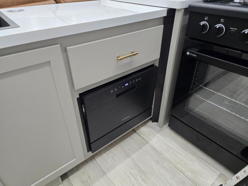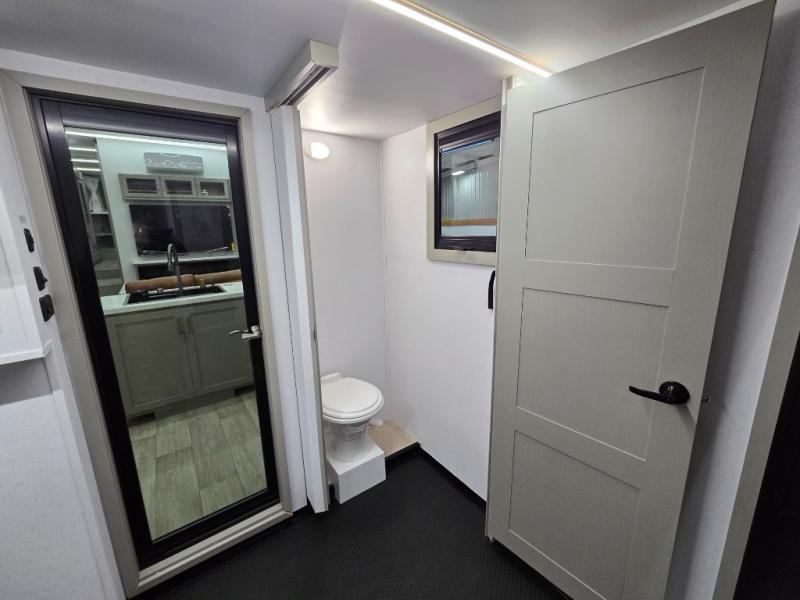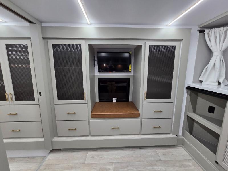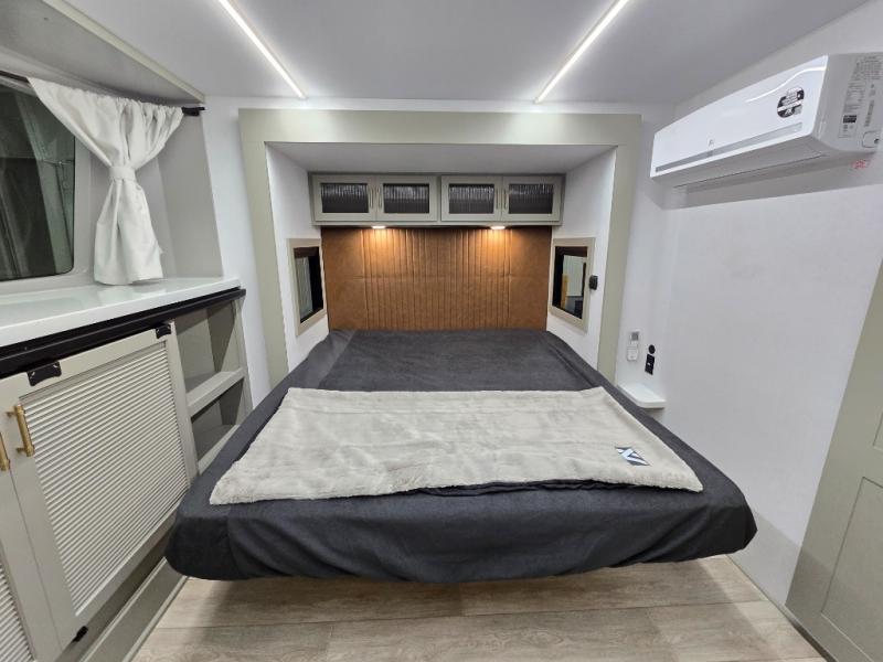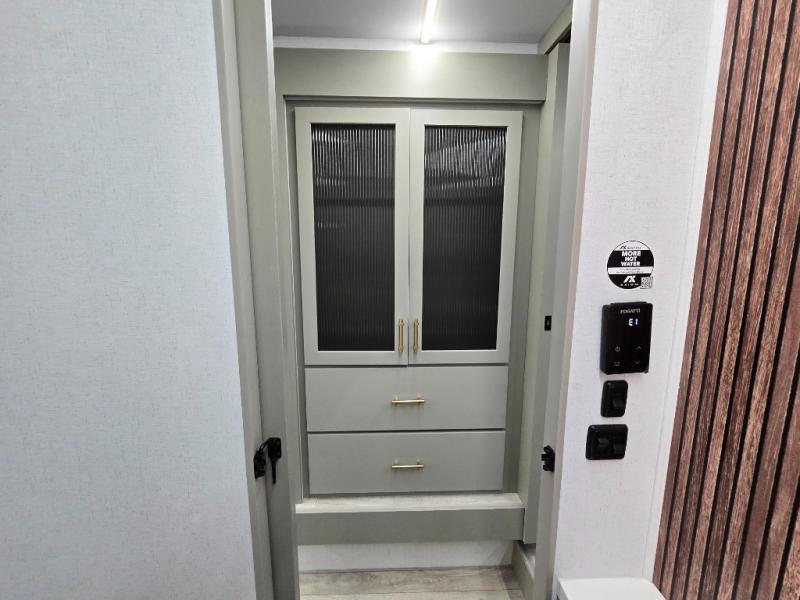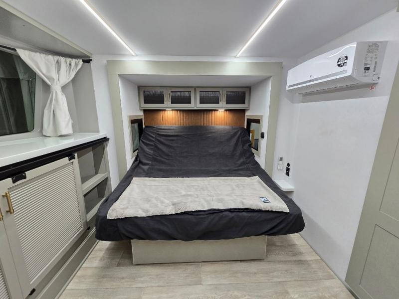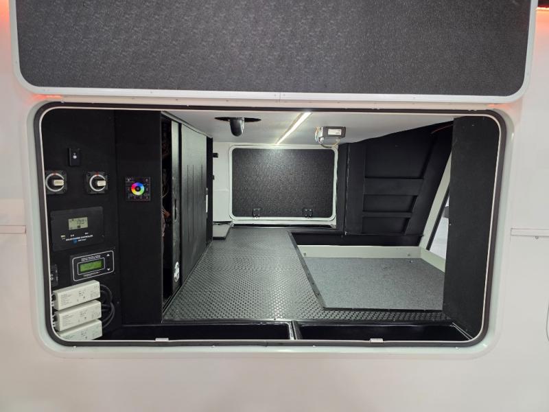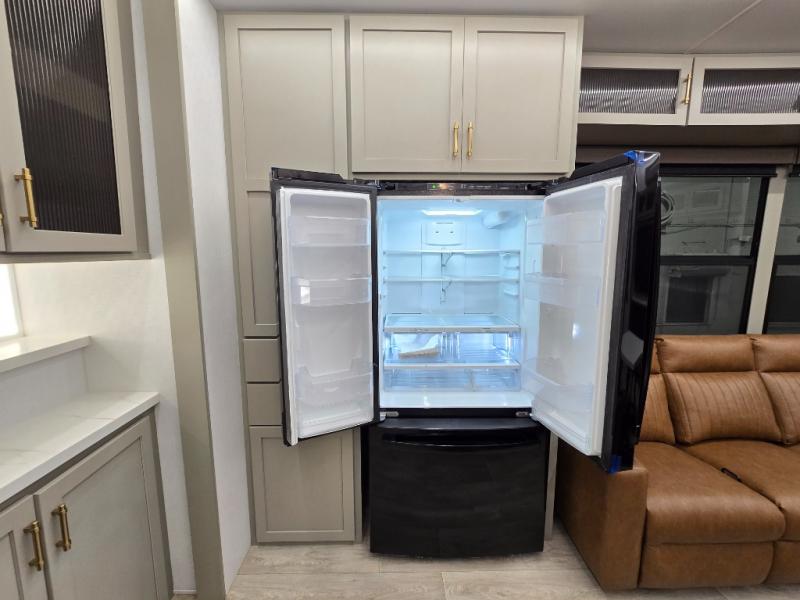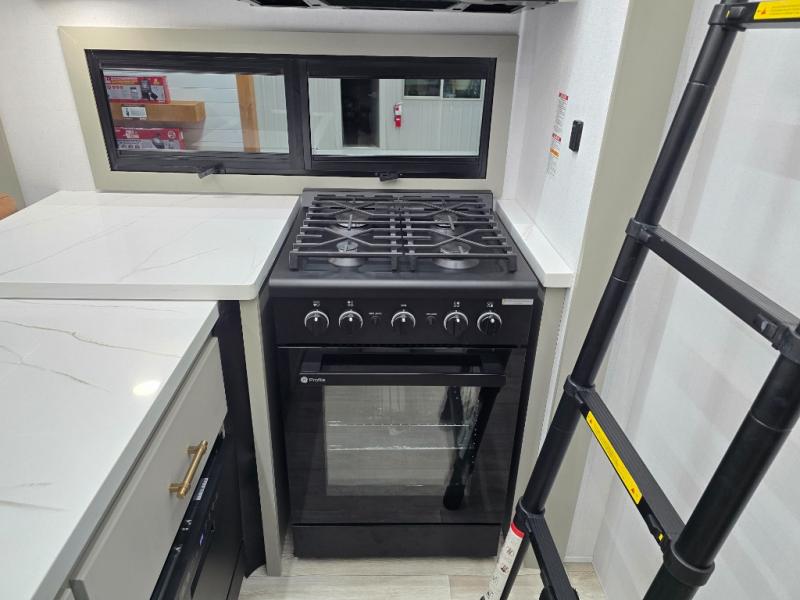 With any Vendetta toy hauler fifth wheel by Axiom RV, you will find innovation and comfort at every turn! The Curt Touring Coil Suspension System with a Curt pin box will provide smooth towing from home to campground, and the deluxe graphics with marine grade fiberglass exterior is sure to be eye-catching. These features are found within the Lux Package, along with a Pathfinder lighting system with integrated turn signals, Lippert solid step triple entry steps, and a low alloy steel construction that is stronger than the competition! The Essential Package features a Lippert 6-point hydraulic leveling system to have you set up at camp in no-time, and the 200-watt solar panel with a 2000-watt inverter provides off-grid capabilities. Solid surface kitchen countertops are included with the AX Comfort Package, along with a Fogotti on-demand water heater, a freedom pass-through storage, Starlink internet prep, and hardwood cabinet doors with slow close hidden hinges.