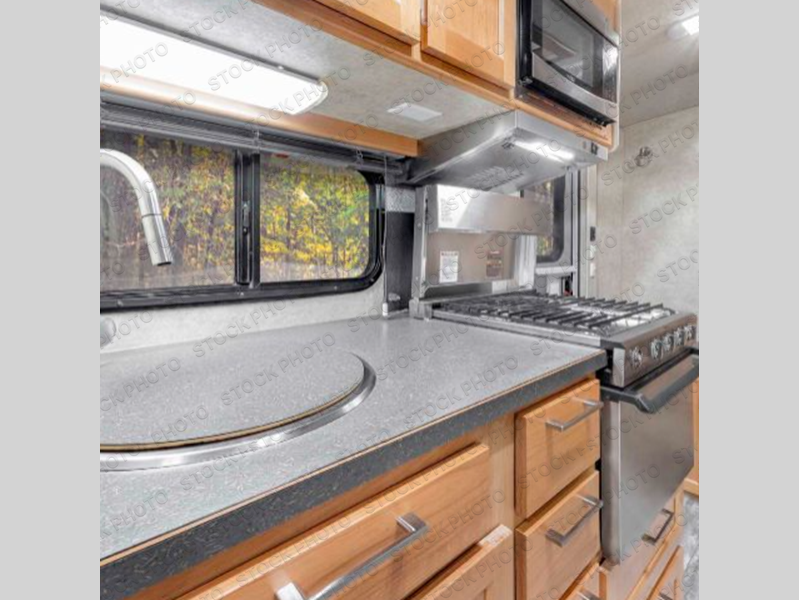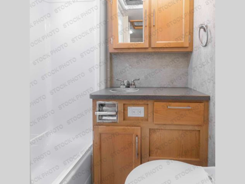 It's time get rid of that old tent and upgrade to this comfortable travel trailer! You will have a full kitchen with a stainless steel oven and cooktop, a stainless steel microwave, plus a round stainless steel sink. The full bath will be a huge convenience since you won't have to use the camp's facilities anymore, and there is a power fan in the bath to keep everything fresh. Play a game at the booth dinette, enjoy meals together, and even house an overnight guest on this space. You'll find plenty of storage throughout this model, including overhead cabinets for special belongings!
