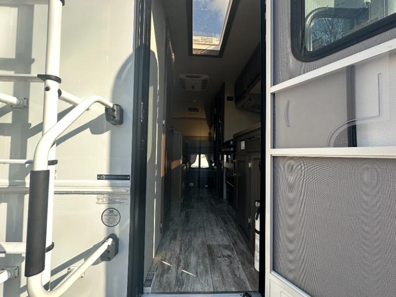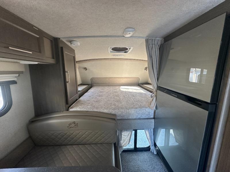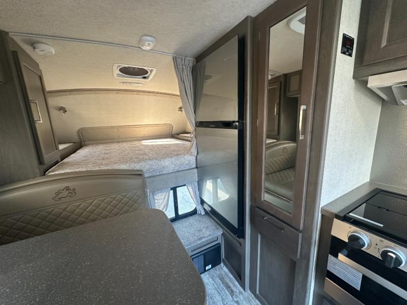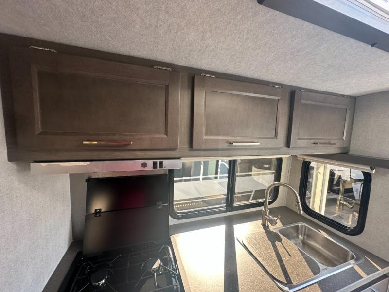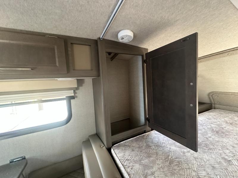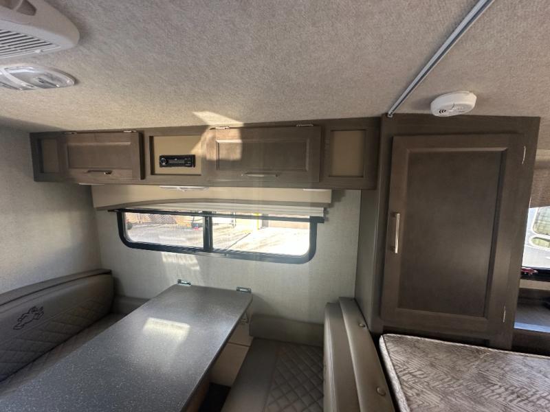 It's possible to camp with at-home comforts, and this truck camper is proof of that! Once you arrive at the campground, prepare lunch on the three burner cooktop, then dine together at the booth dinette. You'll appreciate a 2-way refrigerator for perishables, plus overhead cabinets snacks. There is additional storage in the bedside storage cabinets and the shirt closet in the bunk area. This model also includes a convenient wet bath, so you won't have to leave your camping in the middle of the night!