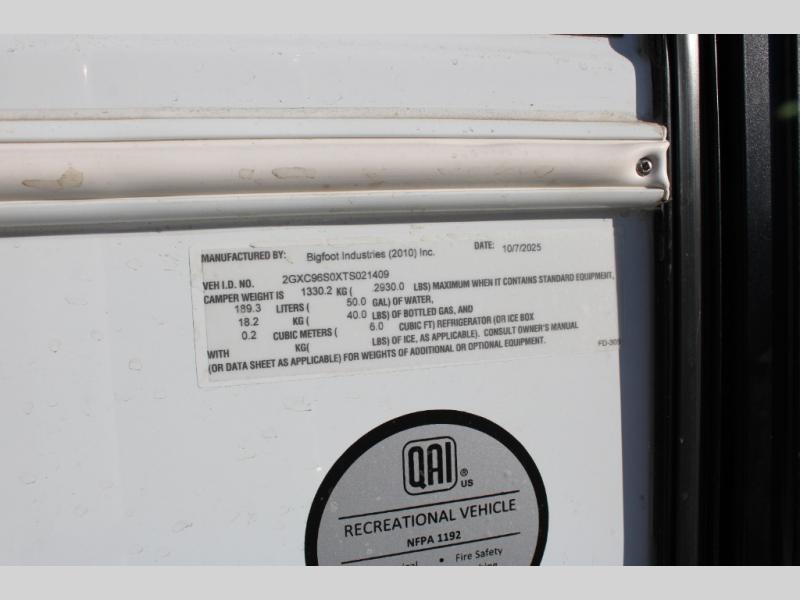 New 2026 Bigfoot Industries Bigfoot 2500 Series C9.6SB Truck Camper