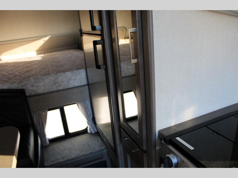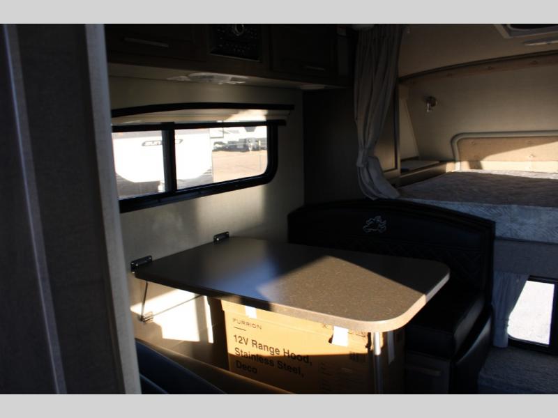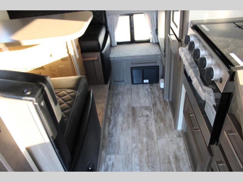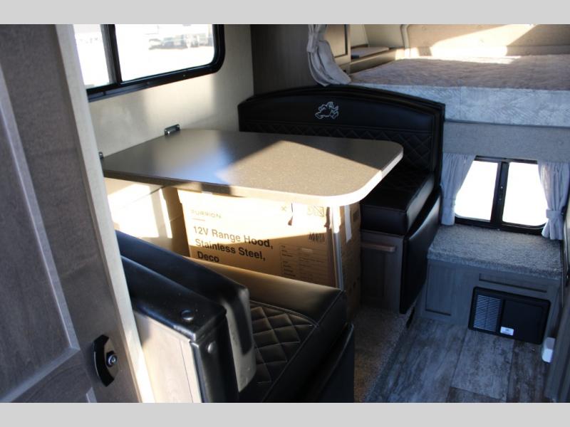 It's possible to camp with at-home comforts, and this truck camper is proof of that! Once you arrive at the campground, prepare lunch on the three burner cooktop, then dine together at the booth dinette. You'll appreciate a 2-way refrigerator for perishables, plus overhead cabinets snacks. There is additional storage in the bedside storage cabinets and the shirt closet in the bunk area. This model also includes a convenient wet bath, so you won't have to leave your camping in the middle of the night!