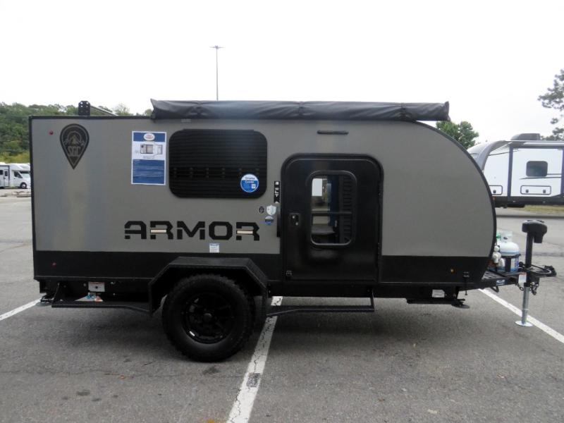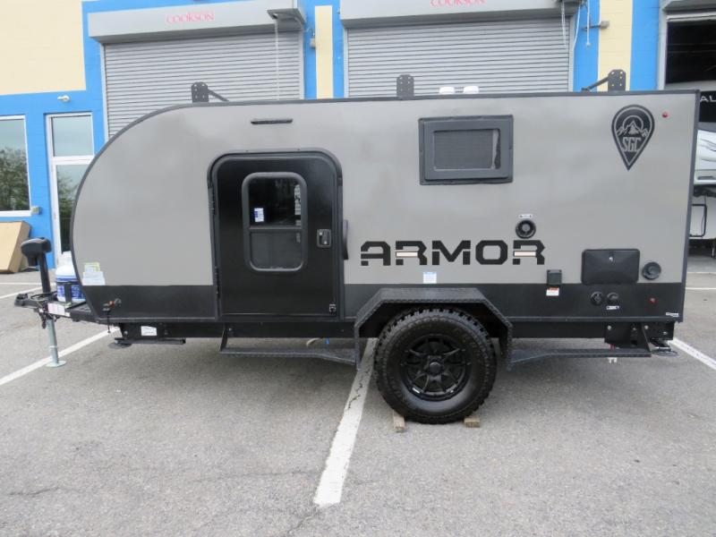 With any Armor LT teardrop trailer or travel trailer by Skinny Guy Campers, you will be able to enjoy your adventures for years to come thanks to their rugged and durable design. The Torsion-Flex 3,000 lb. independent suspension with electric brakes and max-clearance design will help make towing smoother than ever, plus there are over-sized, all-terrain radial tires with alloy aluminum sport wheels to help tackle tougher roads. There is also vacuum-bond fiberglass sidewall construction with Azdel and a Norco stamped and huck-bolted, heavy-gauge steel, powder-coated mainframe with an EZ-Extend hitch jack for hassle-free towing. Inside, you'll enjoy LED lighting, multiple 110V, 12V and USB ports to stay powered up, and a 12V, 3-speed roof vent to keep air flowing.