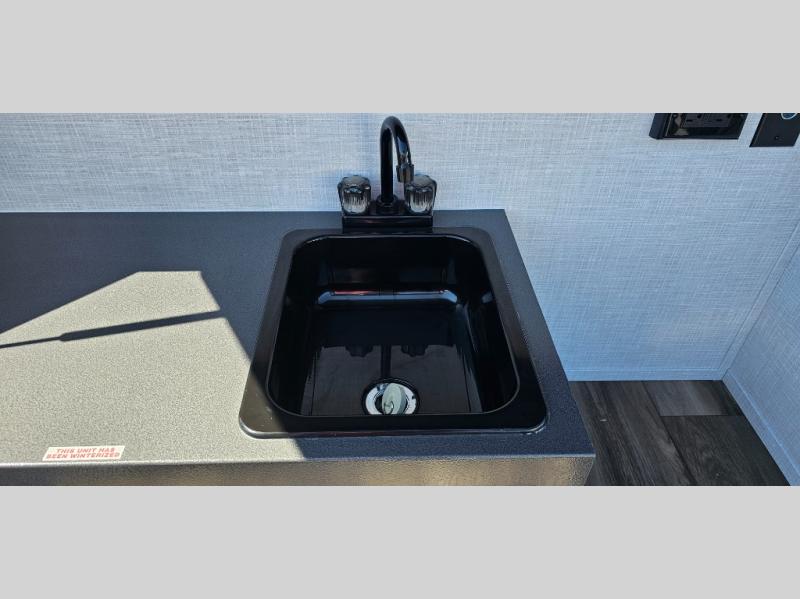 You and your loved one will have a great adventure with this teardrop trailer! Start your mornings off feeling recharged and ready to go after sleeping on the front mattresses. The 12V vent helps to circulate fresh air in and out of the unit, and the 13,500 wall-mounted A/C has a simple interface to cool it off quicker. There are LED lights and multiple 110V, 12V, and USB outlets conveniently located throughout. The exterior kitchenette includes a two burner cooktop and cooler plus an integrated sink with a 26 gallon fresh water tank and 12V water pump.