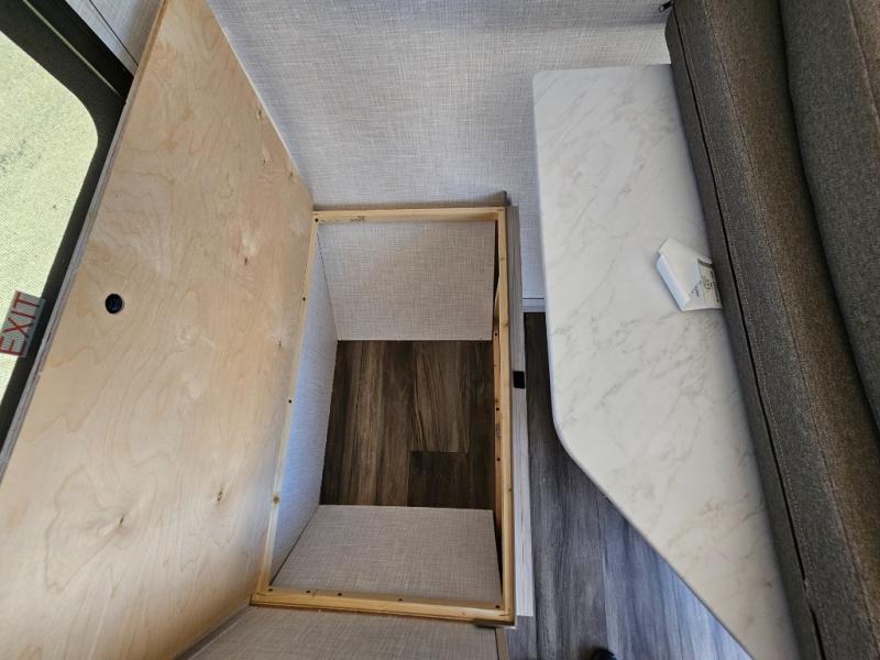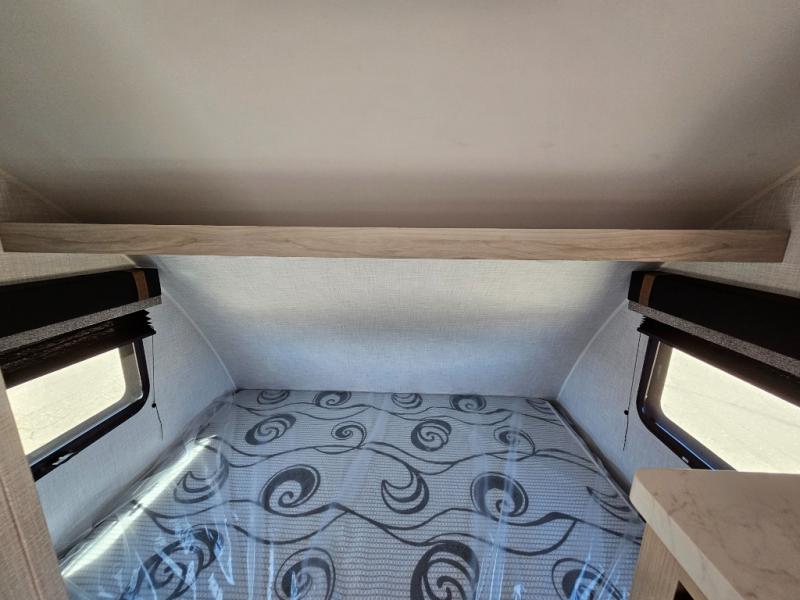 This trailer will feel a little more like home with its queen-size bed! You'll find a convenient wet bath to clean up in each day, plus full kitchen amenities, including a two burner cooktop and a microwave oven. The front dinette will be perfect for dining, playing games, and sleeping an extra guest or two little ones. And since there is a 110V floor mounted A/C included you may just decide to camp all summer!