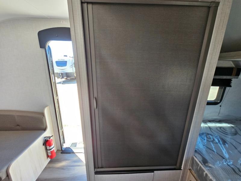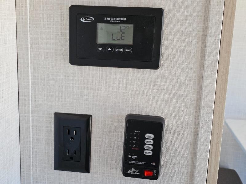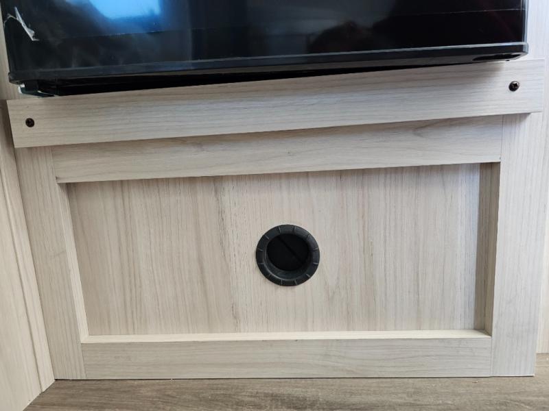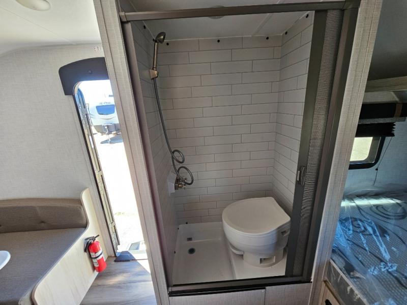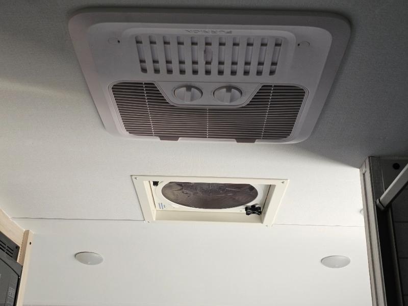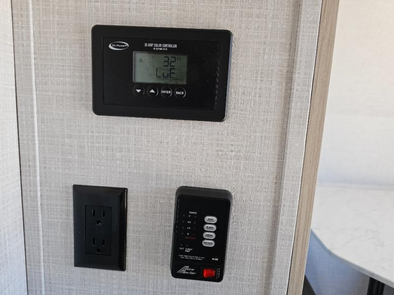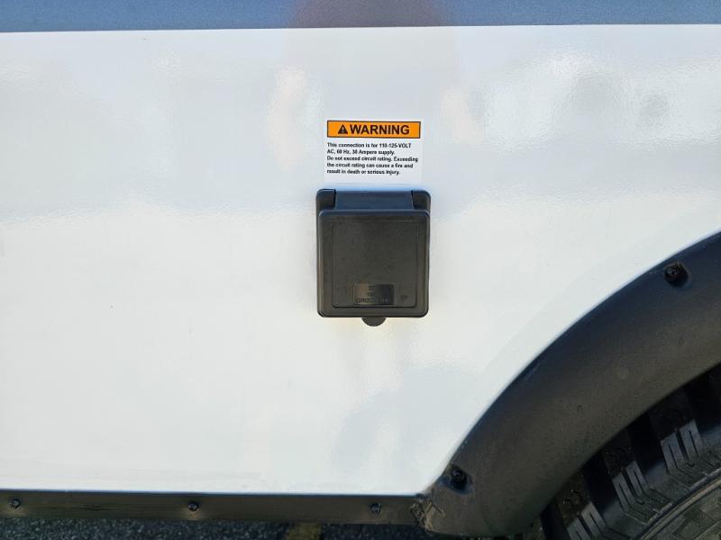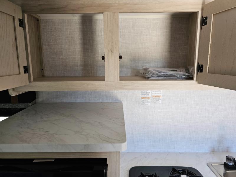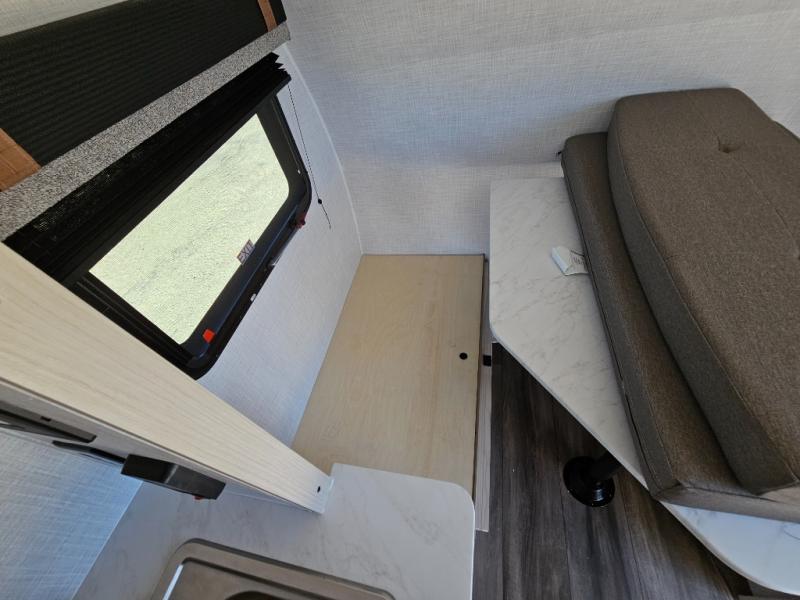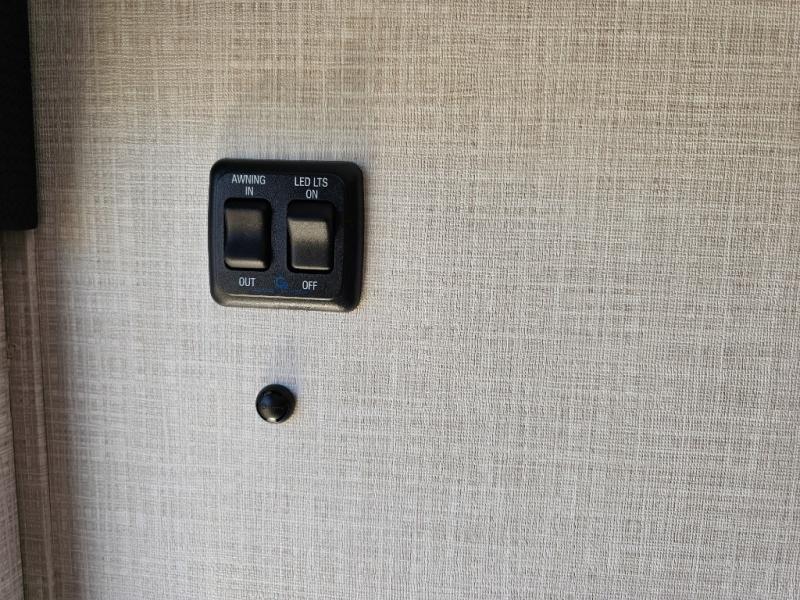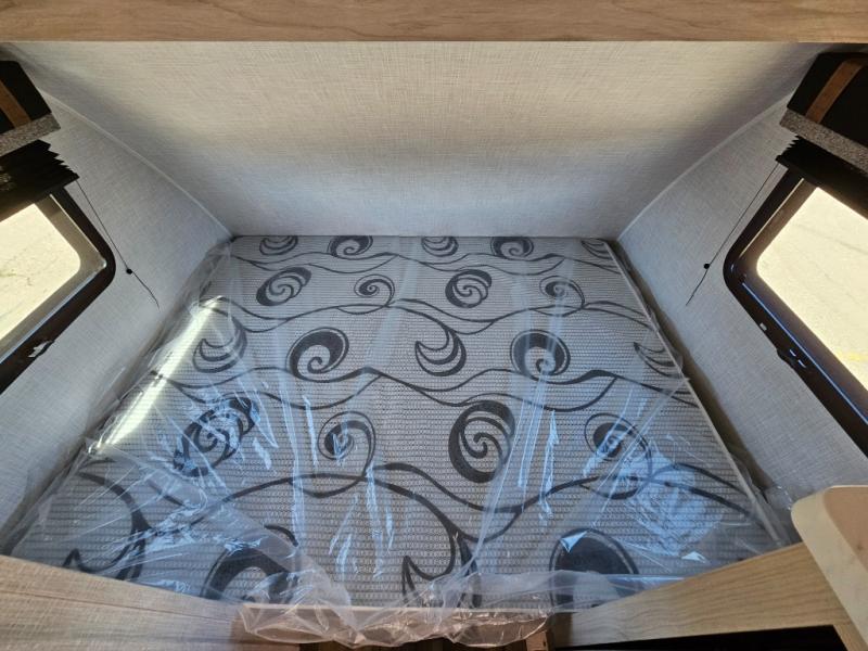 This trailer will feel a little more like home with its queen-size bed! You'll find a convenient wet bath to clean up in each day, plus full kitchen amenities, including a two burner cooktop and a microwave oven. The front dinette will be perfect for dining, playing games, and sleeping an extra guest or two little ones. And since there is a 110V floor mounted A/C included you may just decide to camp all summer!