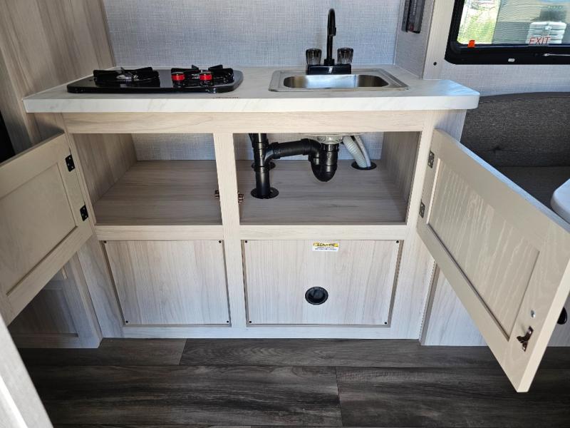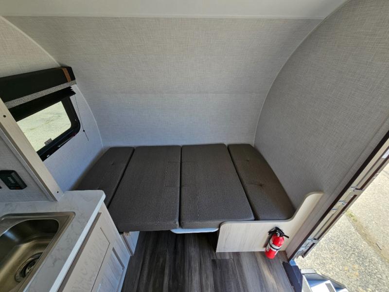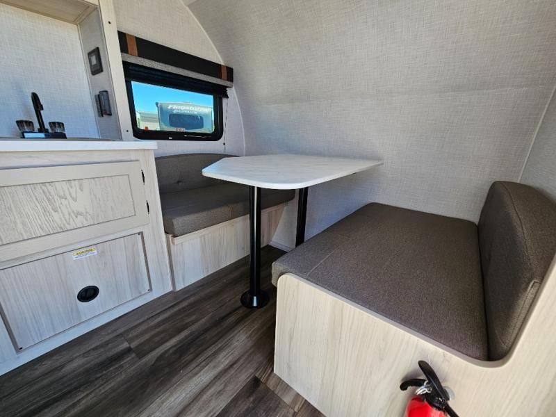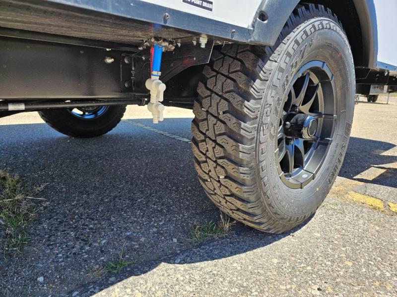 The Standard teardrop trailers by Bontrager Outdoors include a 3,000 lb. high-clearance, torsion-flex, independent axle for smooth towing, and over-sized, all-terrain radial tires with alloy aluminum sport wheels to go off the beaten path. The durable Norco, stamped steel, powder-coated mainframe means you can enjoy your trailer for years to come, and the two rear BAL stabilizing jacks will provide stability as you camp. The Standard teardrop trailers are perfect for those looking for a little extra comfort during their adventures. You'll find an extended wet bath, which you won't find on most teardrop trailers, a small but mighty kitchen area that allows you to make meals each day, plus a 14,300 BTU Truma Combi heater and water heater so you can camp well into the colder months.