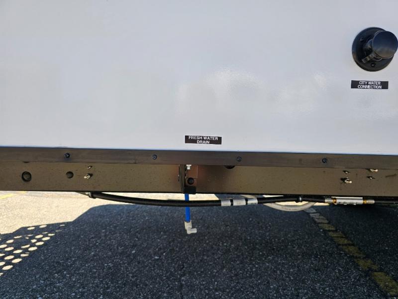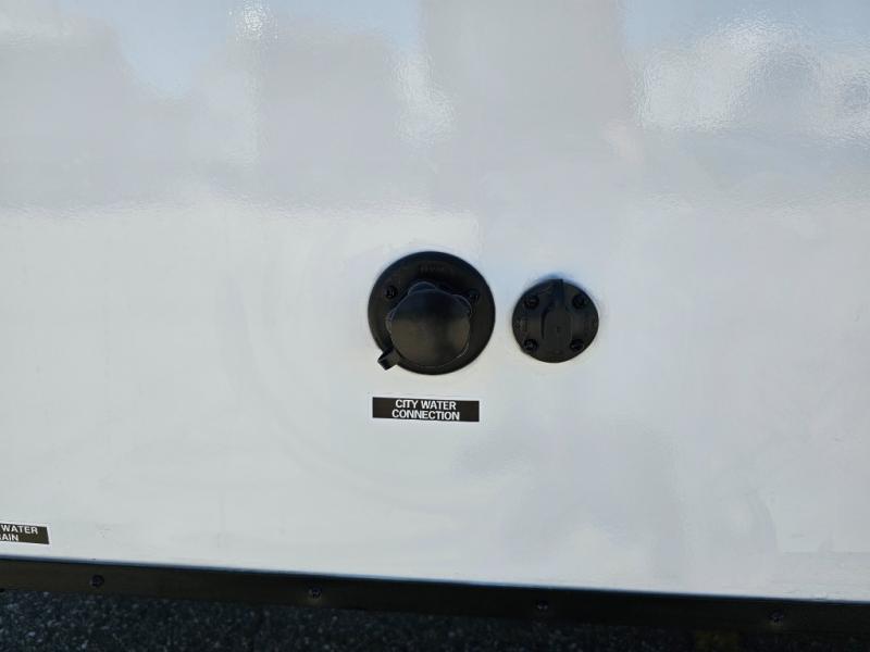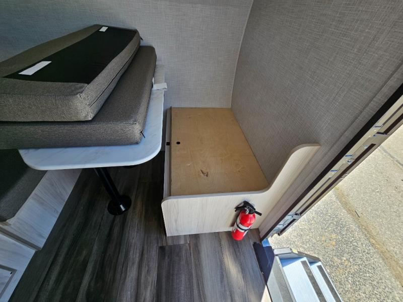 This trailer will feel a little more like home with its queen-size bed! You'll find a convenient wet bath to clean up in each day, plus full kitchen amenities, including a two burner cooktop and a microwave oven. The front dinette will be perfect for dining, playing games, and sleeping an extra guest or two little ones. And since there is a 110V floor mounted A/C included you may just decide to camp all summer!