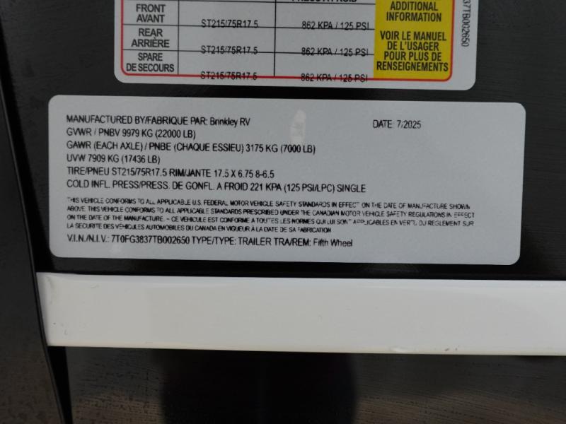 New 2026 Brinkley Model G 3250 Toy Hauler Fifth Wheel