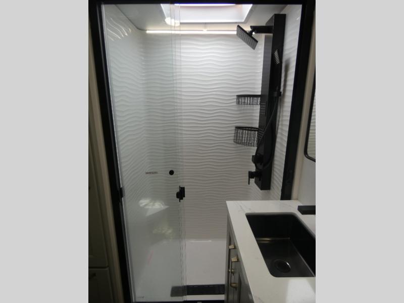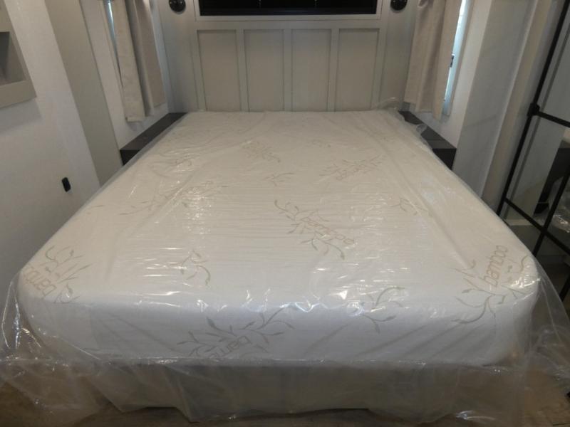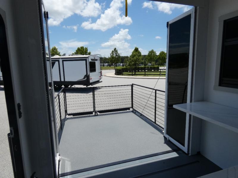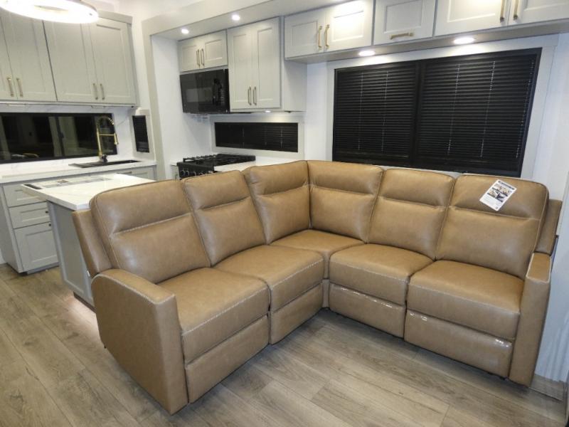 With any Model G toy hauler fifth wheel by Brinkley you will enjoy luxurious amenities, tons of storage space, and innovative features that have been developed and tested in the real world. Durable construction includes an industry leading PDI process, an industry best insulation package, and reinforced and walkable slide roofs. Some of the exterior features you'll find are a 3-way pass-through with a multi-functional flip-up bulkhead wall, under I-beam storage, a MAX-Vision reverse lighting system, and a low-maintenance roof to name a few. A Rockford Fosgate audio system comes standard, along with a OneControl app system that lets you control your fifth wheel's functions right from your mobile device. You will find the solar system with a designated storage area to be ultra convenient, plus there is a FlexPower 5500 with a dual fuel inverter generator for all your power needs. Head inside to find a residential interior with Brinkley's CraftSense wood trim construction, floating entrance steps, integrated window screens and insulated blackout blinds, and residential solid surface countertops plus backsplash. You will also enjoy the neon shower lighting and recessed medicine cabinets in the bath, plus motion activated LED bed lights and dual bedside outlets in the bedroom. Choose a Model G toy hauler fifth wheel to experience all the luxury it has to offer!