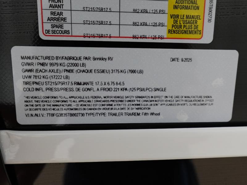 New 2026 Brinkley Model G 3250 Toy Hauler Fifth Wheel