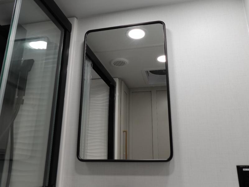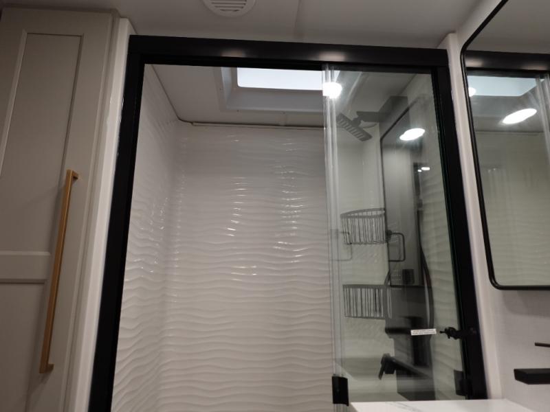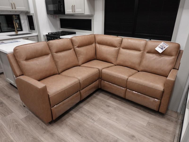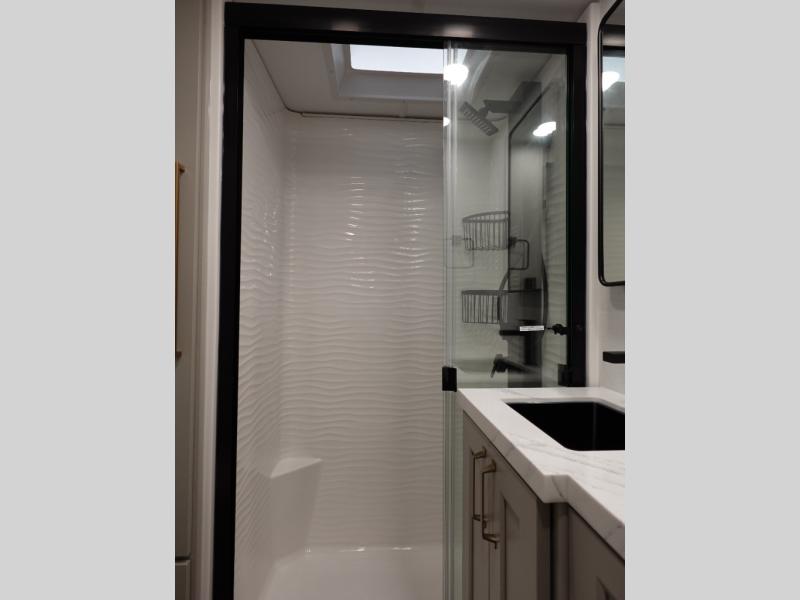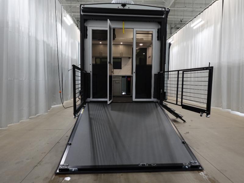 With any Model G toy hauler fifth wheel by Brinkley you will enjoy luxurious amenities, tons of storage space, and innovative features that have been developed and tested in the real world. Durable construction includes an industry leading PDI process, an industry best insulation package, and reinforced and walkable slide roofs. Some of the exterior features you'll find are a 3-way pass-through with a multi-functional flip-up bulkhead wall, under I-beam storage, a MAX-Vision reverse lighting system, and a low-maintenance roof to name a few. A Rockford Fosgate audio system comes standard, along with a Full app-based coach control system (iOS & Android) that lets you control your fifth wheel's functions right from your mobile device. You will find the solar system with a designated storage area to be ultra convenient, plus there is a FlexPower 5500 with a dual fuel inverter generator for all your power needs. Head inside to find a residential interior with Brinkley's CraftSense wood trim construction, floating entrance steps, integrated window screens and insulated blackout blinds, and residential solid surface countertops plus backsplash. You will also enjoy the neon shower lighting and recessed medicine cabinets in the bath, plus motion activated LED bed lights and dual bedside outlets in the bedroom. Choose a Model G toy hauler fifth wheel to experience all the luxury it has to offer!