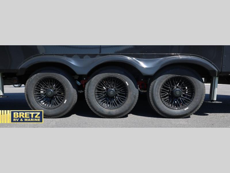 With any Model G toy hauler fifth wheel by Brinkley you will enjoy luxurious amenities, tons of storage space, and innovative features that have been developed and tested in the real world. Durable construction includes an industry leading PDI process, an industry best insulation package, and reinforced and walkable slide roofs. Some of the exterior features you'll find are a 3-way pass-through with a multi-functional flip-up bulkhead wall, under I-beam storage, a MAX-Vision reverse lighting system, and a low-maintenance roof to name a few. A Rockford Fosgate audio system comes standard, along with a Full app-based coach control system (iOS & Android) that lets you control your fifth wheel's functions right from your mobile device. You will find the solar system with a designated storage area to be ultra convenient, plus there is a FlexPower 5500 with a dual fuel inverter generator for all your power needs. Head inside to find a residential interior with Brinkley's CraftSense wood trim construction, floating entrance steps, integrated window screens and insulated blackout blinds, and residential solid surface countertops plus backsplash. You will also enjoy the neon shower lighting and recessed medicine cabinets in the bath, plus motion activated LED bed lights and dual bedside outlets in the bedroom. Choose a Model G toy hauler fifth wheel to experience all the luxury it has to offer!