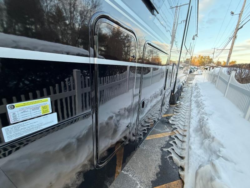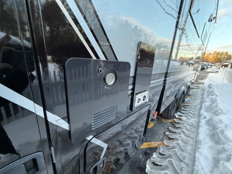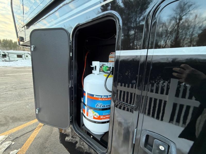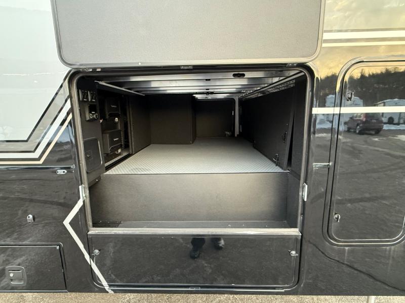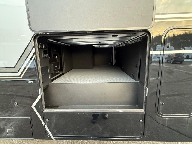 With any Model G toy hauler fifth wheel by Brinkley you will enjoy luxurious amenities, tons of storage space, and innovative features that have been developed and tested in the real world. Durable construction includes an industry leading PDI process, an industry best insulation package, and reinforced and walkable slide roofs. Some of the exterior features you'll find are a 3-way pass-through with a multi-functional flip-up bulkhead wall, under I-beam storage, a MAX-Vision reverse lighting system, and a low-maintenance roof to name a few. A Rockford Fosgate audio system comes standard, along with a Full app-based coach control system (iOS & Android) that lets you control your fifth wheel's functions right from your mobile device. You will find the solar system with a designated storage area to be ultra convenient, plus there is a FlexPower 5500 with a dual fuel inverter generator for all your power needs. Head inside to find a residential interior with Brinkley's CraftSense wood trim construction, floating entrance steps, integrated window screens and insulated blackout blinds, and residential solid surface countertops plus backsplash. You will also enjoy the neon shower lighting and recessed medicine cabinets in the bath, plus motion activated LED bed lights and dual bedside outlets in the bedroom. Choose a Model G toy hauler fifth wheel to experience all the luxury it has to offer!