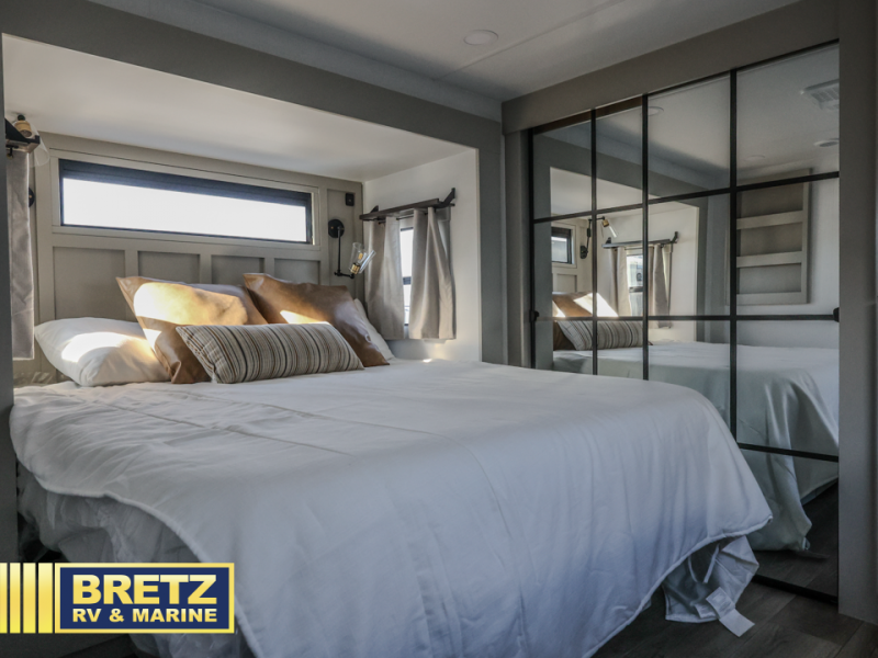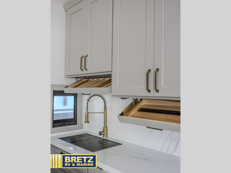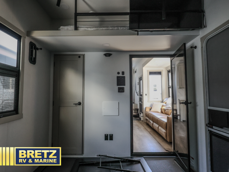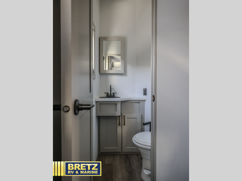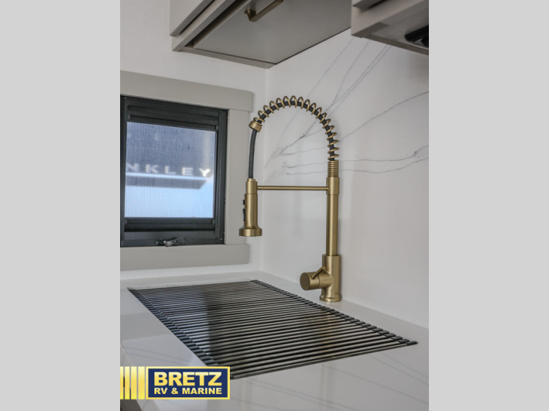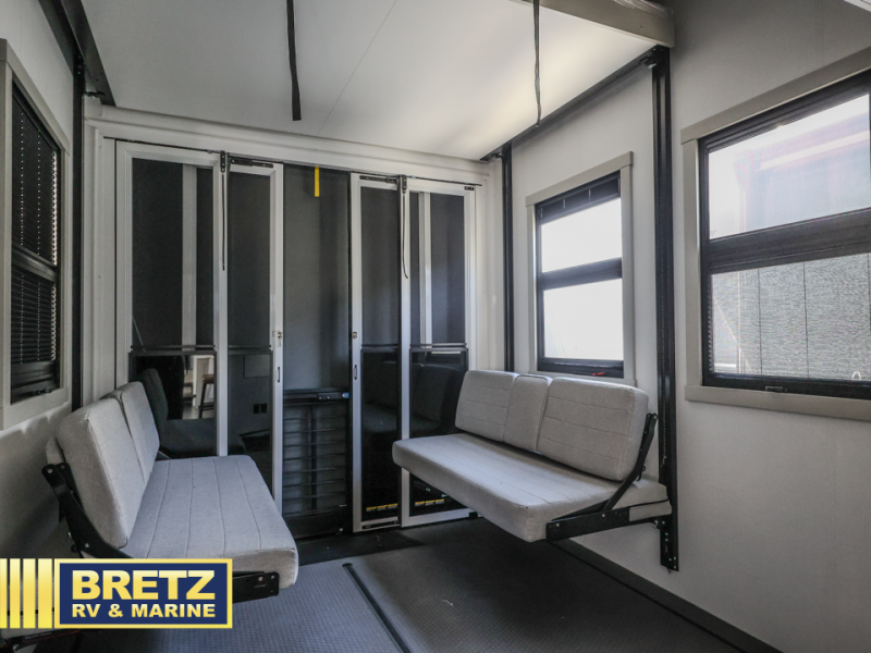 With any Model G toy hauler fifth wheel by Brinkley you will enjoy luxurious amenities, tons of storage space, and innovative features that have been developed and tested in the real world. Durable construction includes an industry leading PDI process, an industry best insulation package, and reinforced and walkable slide roofs. Some of the exterior features you'll find are a 3-way pass-through with a multi-functional flip-up bulkhead wall, under I-beam storage, a MAX-Vision reverse lighting system, and a low-maintenance roof to name a few. A Rockford Fosgate audio system comes standard, along with a OneControl app system that lets you control your fifth wheel's functions right from your mobile device. You will find the solar system with a designated storage area to be ultra convenient, plus there is a FlexPower 5500 with a dual fuel inverter generator for all your power needs. Head inside to find a residential interior with Brinkley's CraftSense wood trim construction, floating entrance steps, integrated window screens and insulated blackout blinds, and residential solid surface countertops plus backsplash. You will also enjoy the neon shower lighting and recessed medicine cabinets in the bath, plus motion activated LED bed lights and dual bedside outlets in the bedroom. Choose a Model G toy hauler fifth wheel to experience all the luxury it has to offer!