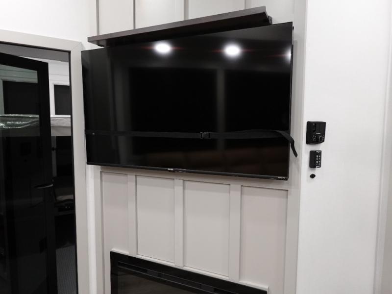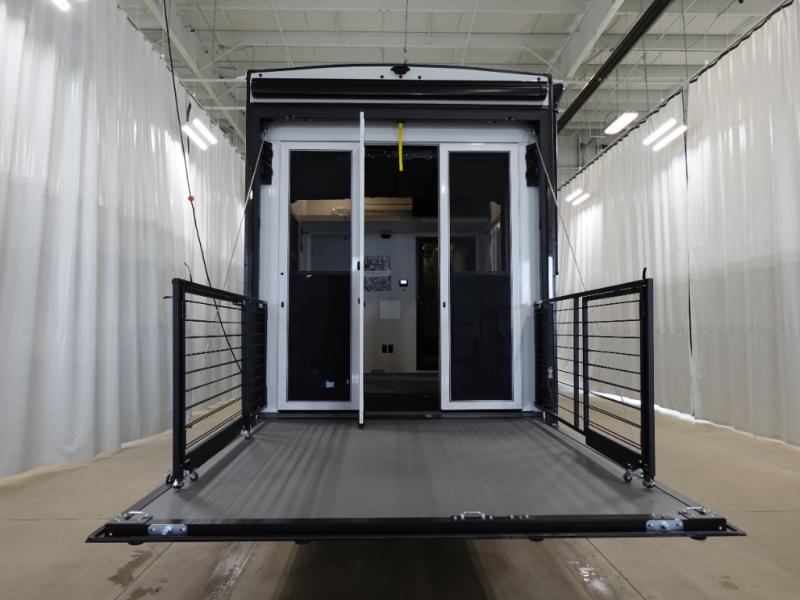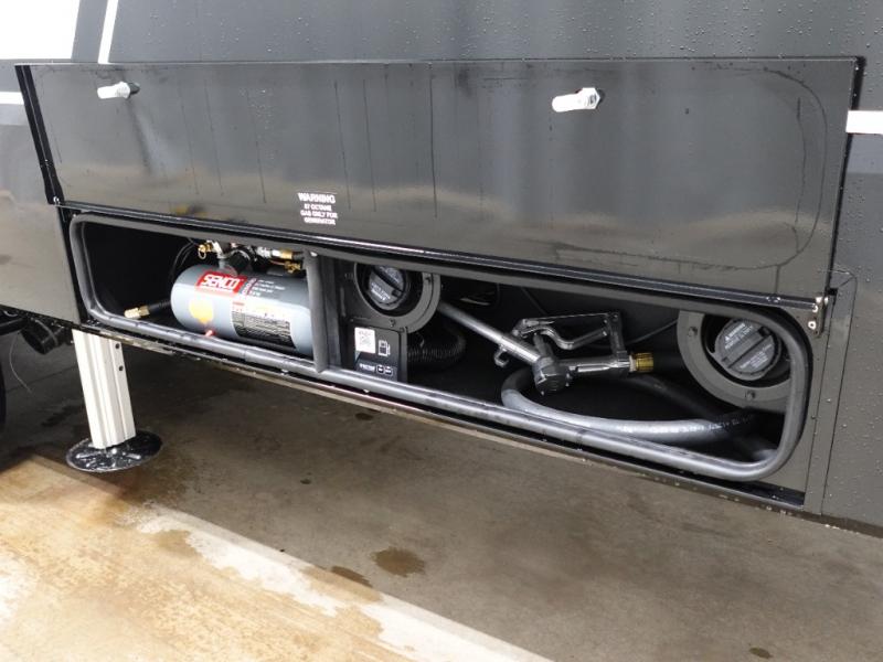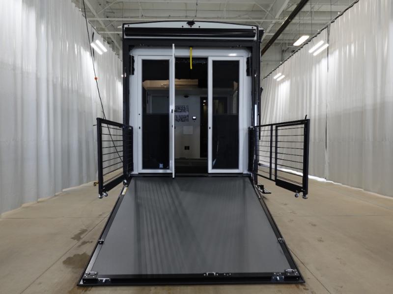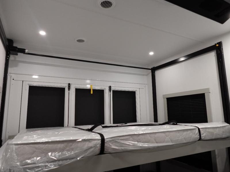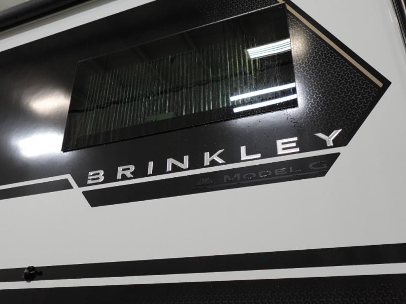 With any Model G toy hauler fifth wheel by Brinkley you will enjoy luxurious amenities, tons of storage space, and innovative features that have been developed and tested in the real world. Durable construction includes an industry leading PDI process, an industry best insulation package, and reinforced and walkable slide roofs. Some of the exterior features you'll find are a 3-way pass-through with a multi-functional flip-up bulkhead wall, under I-beam storage, a MAX-Vision reverse lighting system, and a low-maintenance roof to name a few. A Rockford Fosgate audio system comes standard, along with a OneControl app system that lets you control your fifth wheel's functions right from your mobile device. You will find the solar system with a designated storage area to be ultra convenient, plus there is a FlexPower 5500 with a dual fuel inverter generator for all your power needs. Head inside to find a residential interior with Brinkley's CraftSense wood trim construction, floating entrance steps, integrated window screens and insulated blackout blinds, and residential solid surface countertops plus backsplash. You will also enjoy the neon shower lighting and recessed medicine cabinets in the bath, plus motion activated LED bed lights and dual bedside outlets in the bedroom. Choose a Model G toy hauler fifth wheel to experience all the luxury it has to offer!